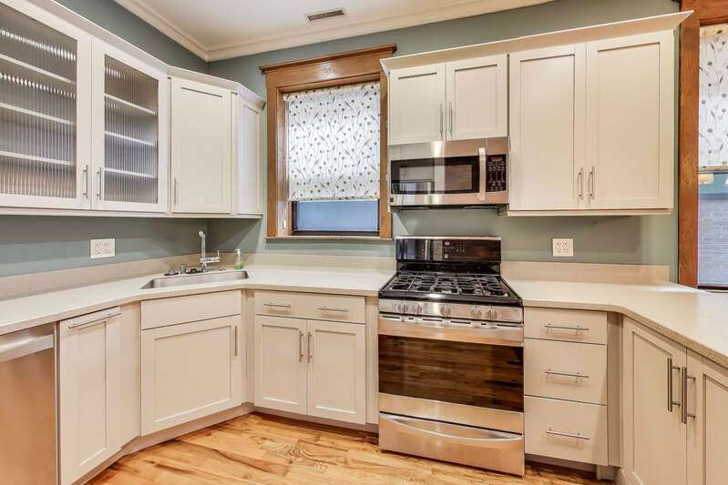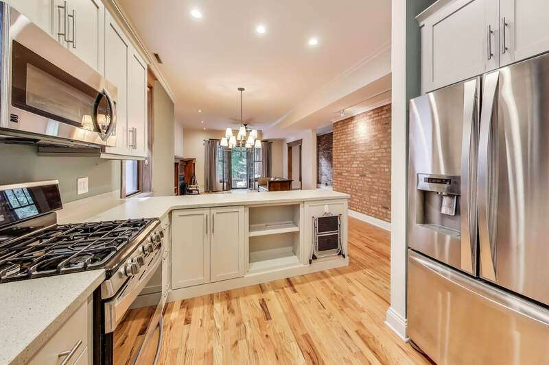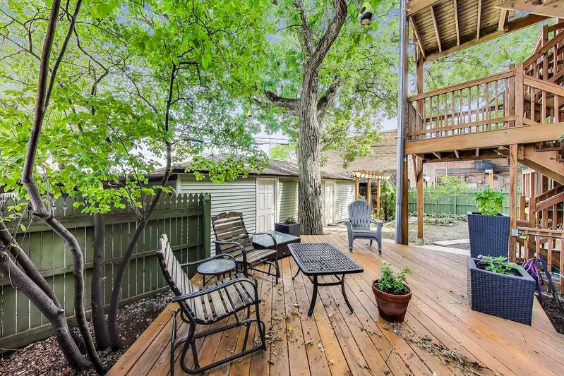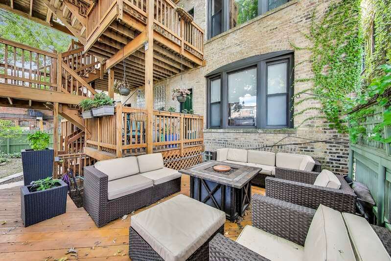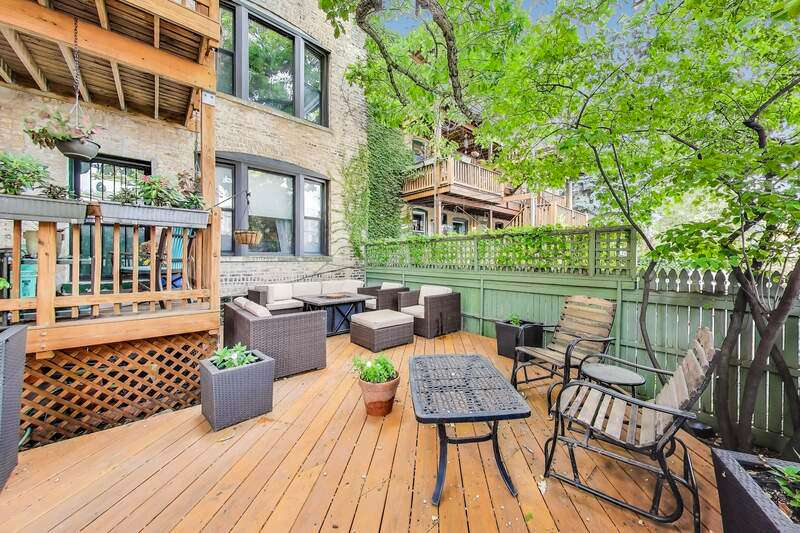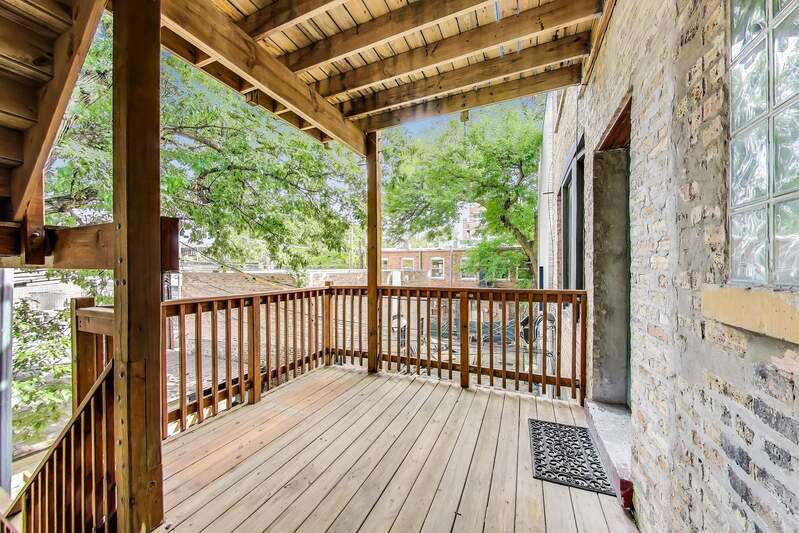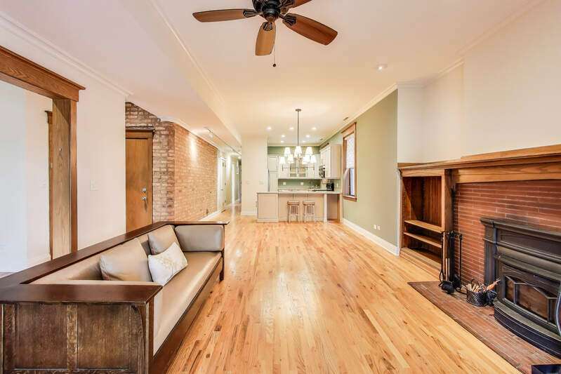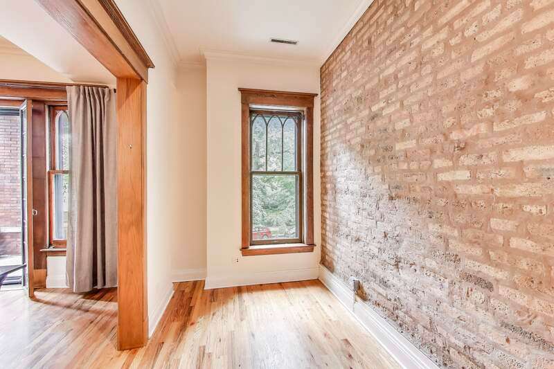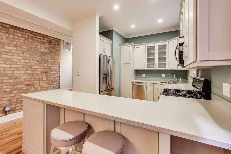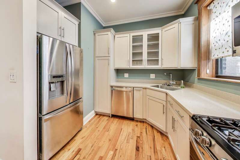 Welcome home to this amazing vintage condo on one of the most beautiful streets in Sheridan Park. An incredible marriage of vintage and modern, striking exposed brick, warm detailed millwork, glowing hardwood floors, high ceilings, beautiful muntined windows and French doors, and a spectacular wood burning fireplace add warmth and charm from the moment you walk in the door. Spacious, extensive living dining room area. A separate den/office, new (2019) kitchen with Martha Stewart cabinets, stainless appliances, loads of counter space and storage. Two large bedrooms (one queen sized, one king sized). Both with walk in closets. Huge primary bath with a lot of possibilities. Hall bath completely redone in 2024. Stackable washer/dryer new in 2021. Bucolic front balcony complete with planters, shades and water will be your refuge 3 seasons of the year. Rear deck perfect for the Sunday New York Times with your morning coffee. There is a large shared deck and yard which will amaze. One garage space included along with a huge storage room. The building is very loved and well maintained-roof patched (2024), new back decks (2017), decks stained (2022), electric service to garage (2024). Unit had a new HVAC in 2022, HWH (2017). Custom window treatments add a lovely finishing touch. Welcome home to this amazing vintage unit in an incredible location with shopping, coffee, restaurants, transportation close by and convenient. Come see the unit that will check all your boxes.