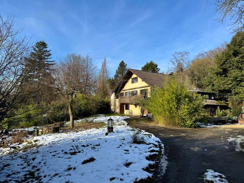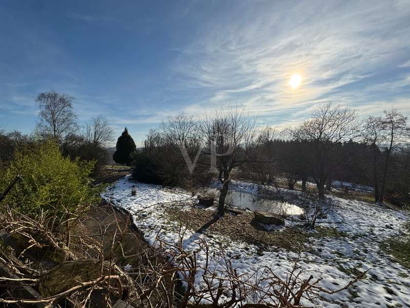 This unique detached house offers a generous living space of approx. 257 m² plus 125 m² of usable space and extends over three floors. With a plot of approx. 9450 m², the house is the ideal choice for nature lovers and horse enthusiasts. The option to lease further land opens up additional possibilities for keeping animals. The house, built in 1983, is in need of renovation and therefore offers potential for individual design and modernization according to your ideas. The central heating system ensures reliable and pleasant temperature control in the living areas. There is a spacious gallery on the top floor of the house, which is currently used as a sleeping area with walk-in closet and master bathroom. This space offers enough room for a separate office or a relaxed reading corner with an excellent flow of light. The first floor is home to the open-plan kitchen, which flows seamlessly into the adjoining living room. This open-plan design promotes a bright and inviting living ambience. Two children's bedrooms, equipped with their own bathroom and separate WC, offer comfort and privacy for family members or guests. A separate utility room and a storage room complete the space on this level and offer additional functionality and storage space. The basement offers further possibilities for individual use and design. For example, a hobby room, a workshop or additional storage space that meets your specific requirements are conceivable. A special feature of the property is its location without direct neighbors, which ensures peace and privacy. The far-reaching views over the surrounding area offer a relaxed atmosphere and allow an unobstructed view of nature. This property is ideal for buyers looking for a combination of large living space, versatile usage options and a life close to nature. The possibility of modernizing the property and designing it according to your own ideas makes it particularly attractive for individualists or families looking for a long-term residential project. If you are interested in viewing the property or require further information, please do not hesitate to contact us. Take the opportunity to discover this interesting offer for yourself and contact us for a personal tour. Our experienced staff will be happy to advise you and help you make this house your future home.