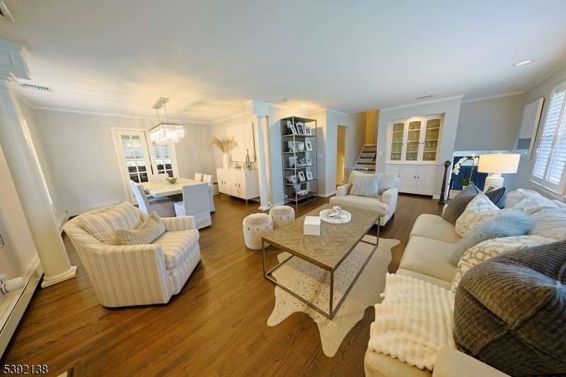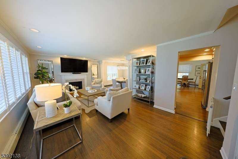 Welcome to this stunning residence boasting 4 spacious bedrooms and 2.1 beautifully appointed baths. Set on a flat park like lot in one of Florham Park's most sought after neighborhoods nestled on a quiet tree lined street. Enjoy a bright open floor plan ideal for modern living. This home greets you with an elegant foyer, with designer marble flooring leading into a sundrenched living room with fireplace and formal dining room with hardwood floors throughout. The updated kitchen offers custom cabinetry, stone countertops, new stainless steel appliances, and is open to the family room with a soaring cathedral ceiling, and a sunlit wall of windows, overlooking impressive yard. Direct access from family room to your own tranquil retreat with an expansive deck and a tree lined yard with no rear neighbors. The ultimate in privacy, relaxation and entertaining. The primary bedroom suite features a grand custom outfitted closet and a beautiful designer bath with double vanity and spa shower. Three more generous bedrooms on the same level, sharing a large full bath with double vanity and shower over tub. Two car attached garage walks into a large outfitted mudroom with custom built-in's, laundry room, and beautiful marble flooring. Spacious unfinished, lower level, which is perfect for recreation, exercise room, media room, or office. In close proximity to highly rated schools, as well as golf course, shopping, town, restaurants, and all major roads.
