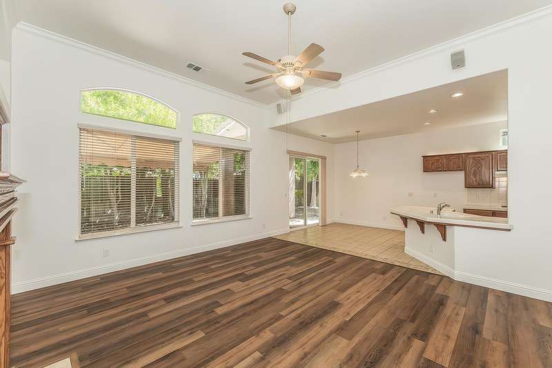 Step into this inviting 4-bedroom, 2-bath home, perfectly situated on a spacious corner lot and offering nearly 2,000 sq ft of stylish living space. Thoughtfully designed for both relaxation and entertaining, the open-concept layout features a family room with a cozy gas fireplace, a bright breakfast nook, and a formal dining room for special occasions. Enjoy the durability and style of luxury vinyl flooring throughout, complemented by fresh interior paint that gives the home a bright, modern touch. The leased solar system provides energy efficiency, helping you save on utility bills. The expansive 3-car garage provides ample parking and storage for all your needs. With generous space and functional design, this home truly has it all. Don't miss your chance to make it yours!