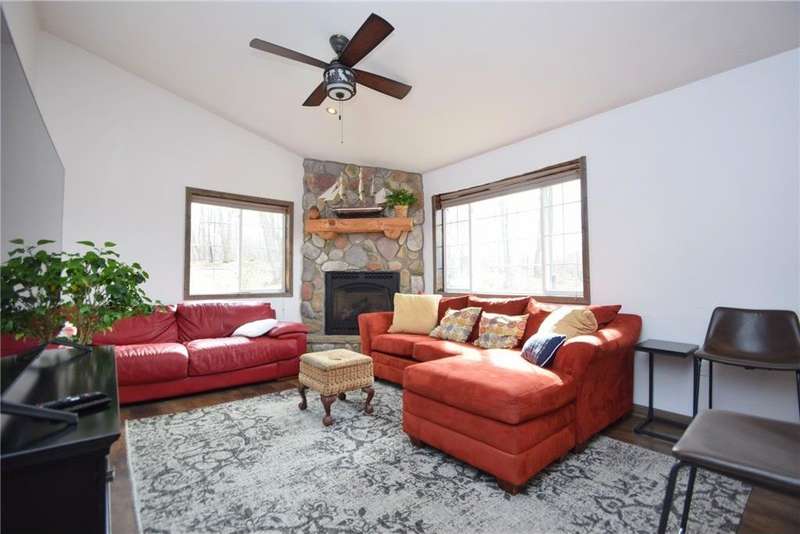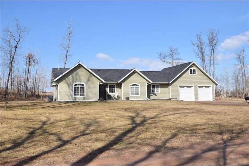 Gorgeous newer 4 BR, 2 BA home, great curb appeal, one level living, maintenance free & high-end finishes! Wind down the private drive to this perfect home with an A1 location just west of Siren and a few minutes from Hwy 70. 5.26 private acres with a great mix of lawn & woods and a patio to enjoy after a long day. Att. 2 car insulated gar. & 28x66 pole bldg. w/elec. to store all of the toys! Updated flooring, interior repainted, fun contrasting trim, barn doors added, new roof 2022, HVAC serviced every year and well maintained. Light & bright interior, cozy living room w/stone LP gas frplc., vaulted ceilings, wonderful kitchen w/custom cherry knotty alder cabinets, lots of storage, granite counters. Dining room off the kitchen for ease of entertaining. Stunning master suite offers your own personal haven w/clawfoot tub to soak in, walk-in closet. Guests or teens will love their own private loft BR. This home boasts all the appointments you seek and definitely checks all the boxes!