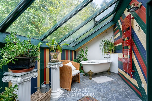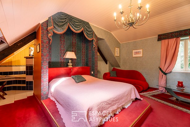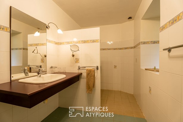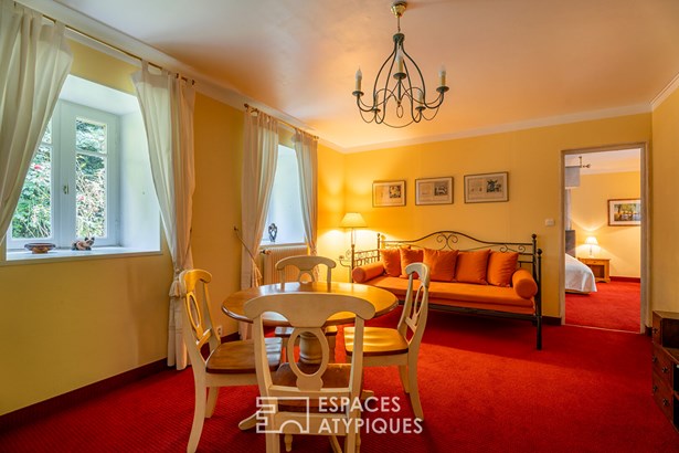 The main house welcomes you with its warm living room, its dining room and its kitchen with storeroom. A linen room and two toilets, one of which is specially designed for people with reduced mobility, complete this level. Upstairs, you will discover two bedrooms with private bathrooms, a mezzanine living room ideal for relaxation, as well as an office. The converted attic offers an additional bedroom, a shower room and a toilet.