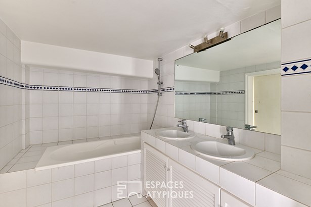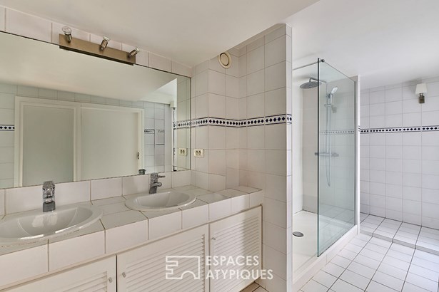 Adjoining, a large 20 sqm eat-in kitchen pleasantly extends the whole, reinforcing the conviviality and reception capacity of the place.
