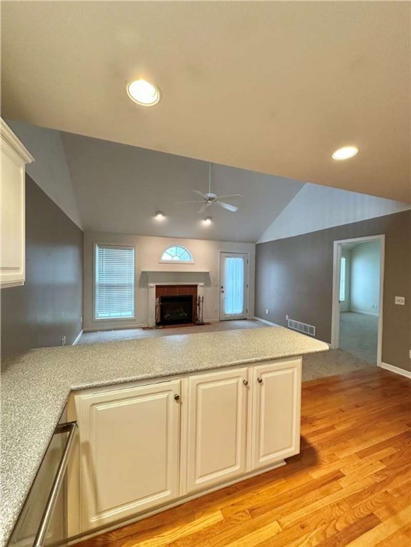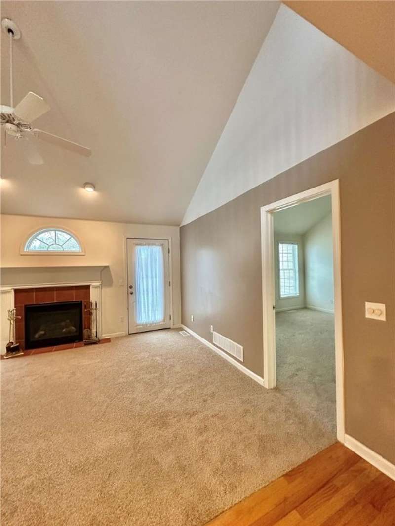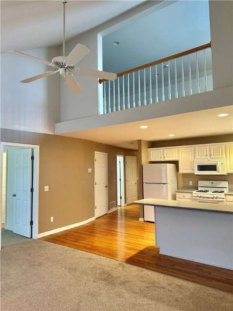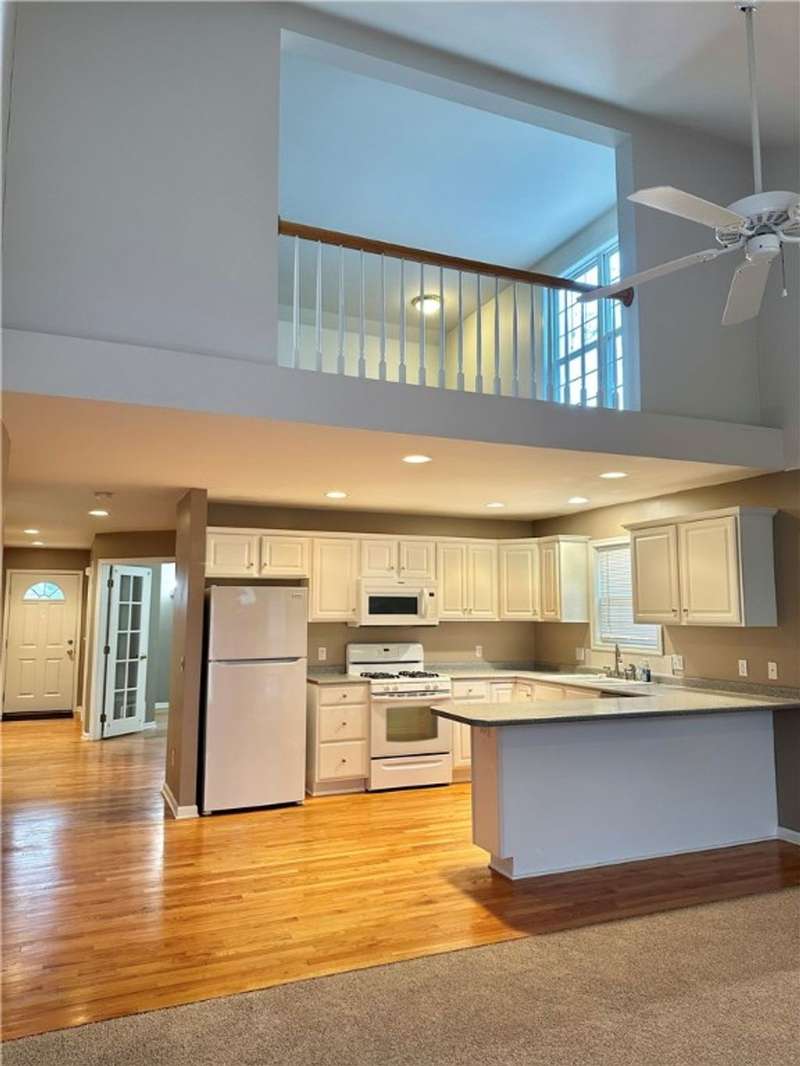 1st floor main bedroom, 1st floor laundry, Foyer/entry hall, living room, loft area/3rd bedroom 2nd floor, porch, patio, cathedral ceiling, skylights, ceiling fan, garage door opener, cable and dish available. Window blinds. Very beautiful end unit. One of the sellers is a licensed agent.