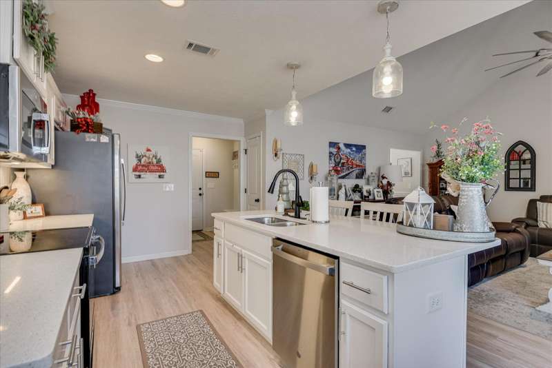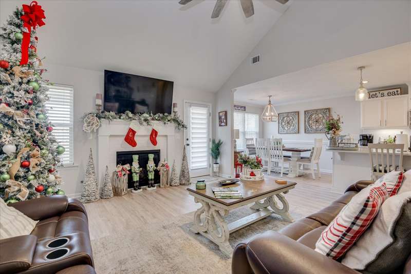 Welcome home to this inviting ranch-style retreat designed for easy living and memorable moments. This three-bedroom, two-bath home features an open-concept layout that keeps everyone connected, whether you're hosting family dinners or enjoying a cozy night in by the living room fireplace. The heart of the home is the beautiful kitchen — complete with upgraded countertops, recessed lighting, and a convenient power pantry that offers plenty of extra Storage, a home office , or kids. playroom. Relax and unwind in the spacious primary suite while the additional bedrooms provide comfort and flexibility for kids or guest. Step outside to a covered back patio overlooking the private, fenced-in backyard — the perfect spot for weekend cookouts, playtime, or quiet evenings together. This home checks all the boxes for comfort, convenience, and family living. All that's missing is you.