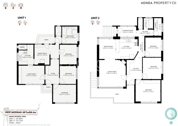 Nestled in one of West Moonah's most desirable pockets, this spacious and versatile property is currently configured as two self-contained three-bedroom units - one on each level - making it an ideal opportunity for investors, multi-generational living, or buyers seeking a flexible layout with long-term potential.Each level features its own private entrance, kitchen, bathroom, and generous living spaces, offering independence and privacy for occupants. Whether you're accommodating extended family, considering a home-and-income setup, or expanding your investment portfolio, this dual-dwelling configuration adds exceptional value and versatility.Adding to its appeal, the property benefits from dual street frontage, creating excellent scope for future development. With the potential for another build at the rear of the property (STCA), this feature significantly enhances both the current and long-term value - a key factor that attracted the current owners to purchase originally.Located on a quiet street just moments from local schools, shopping amenities, and with easy access to Hobart's CBD, the home offers a lifestyle of convenience combined with strong rental appeal. The elevated position captures scenic views across the Derwent River to Mount Direction, enhancing the peaceful, sun-drenched living experience.The upper-level unit includes a north-facing open plan living area with a seamless lounge, dining, and kitchen space, flowing onto a balcony with tranquil river and mountain views - perfect for relaxing or entertaining.Currently leased until July 2026 for a combined $910 per week, this property delivers immediate, stable rental income. Whether you're an investor capitalising on the existing lease, planning to occupy one level while leasing the other, or exploring subdivision and development potential, the options are abundant.Set on a generous allotment, there's scope to renovate, modernise, or further develop - appealing to developers, renovators, and forward-thinking buyers alike.Key Features:- Configured as two self-contained 3-bedroom units (one upstairs, one downstairs)- Each unit includes its own kitchen, bathroom, and private entry -Sought-after West Moonah location in a quiet street- Close to schools, shops, public transport, and Hobart CBD- Scenic views over the Derwent River to Mount Direction- Balcony retreat with elevated outlook from the upper unit- North-facing open plan living with abundant natural light- Currently leased at $910/week until July 2026- Ideal for investors, dual occupancy, or multi-generational living- Excellent scope for future renovations or developmentWhether you're looking to invest, nest, or explore development potential, this rare dual-dwelling property delivers location, lifestyle, and lasting value in a high-demand suburb.Disclaimer: All care has been taken by 4one4 Real Estate and 4one4 Media House when compiling the marketing material and information in this presentation. We cannot guarantee the accuracy of any measurement or details supplied in this advertisement and make no representation or accept any responsibility for the whole or part of this advertisement.The particulars contained in this advertisement do not form any contract. We recommend that any interested parties should have the information independently verified and make their own enquires to satisfy themselves in all respects. All photos, video and marketing material remain the property of 4one4 Media House, a division of 4one4 Real Estate, and are not to be downloaded and used for any purpose without the express consent and written permission of 4one4 Real Estate.