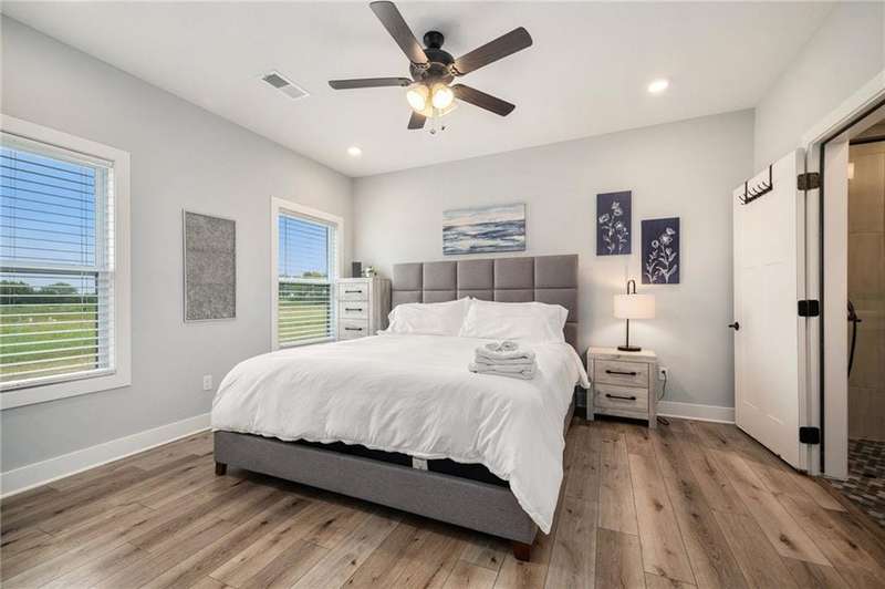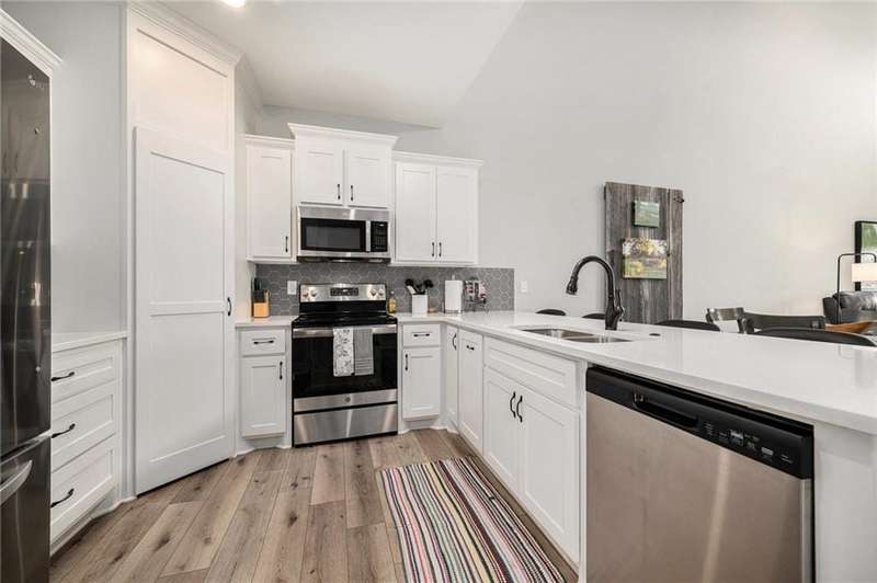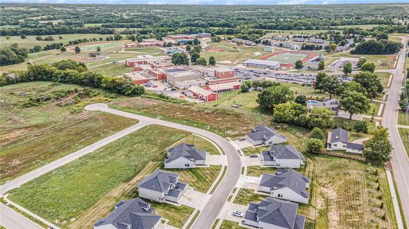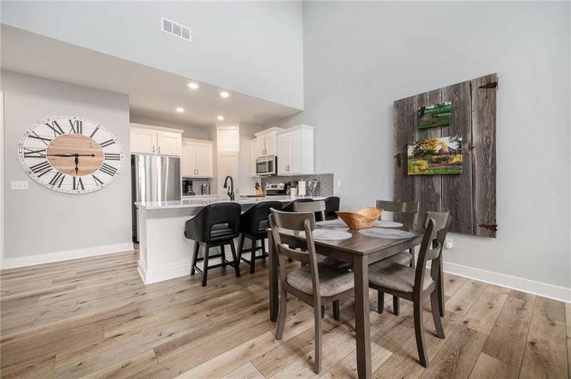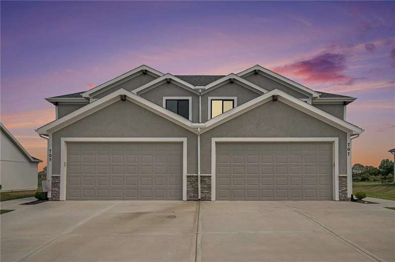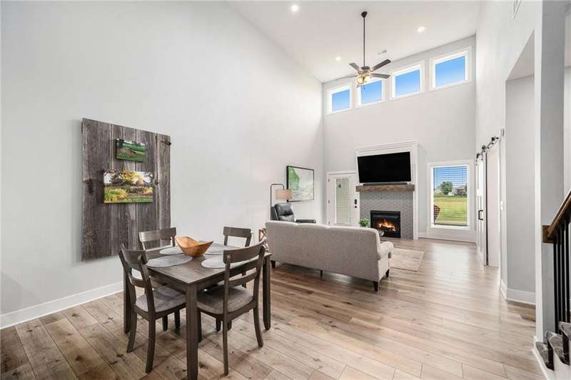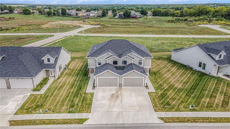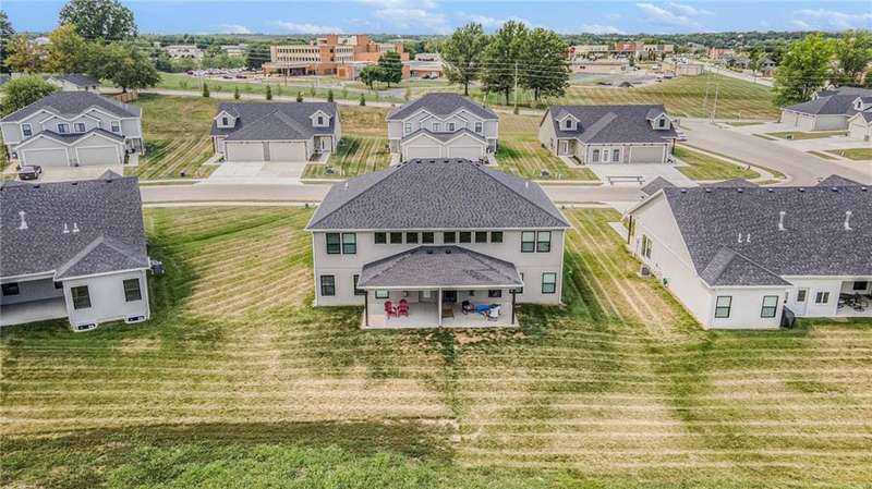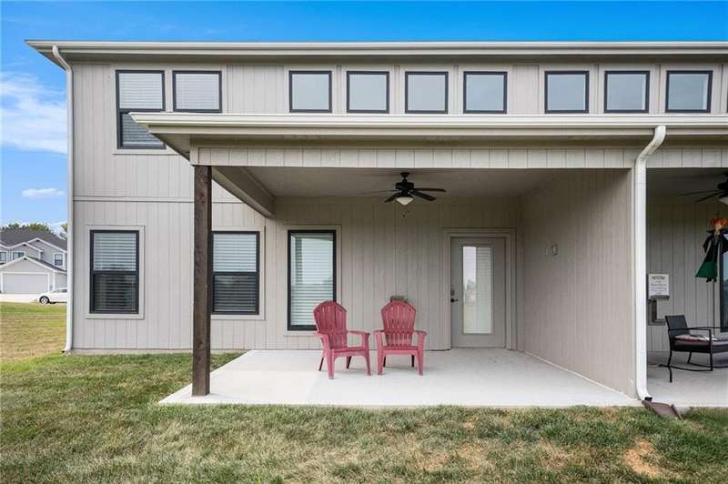 Better Than New!Welcome to this stunning 1.5-story townhome thats just 3 years young and move-in ready! Perfectly situated in the heart of Smithville, this home offers unbeatable convenience close to major highways, top-rated schools, shopping, restaurants, Historic Downtown Smithville, Smithville Lake, and just a quick drive to KCI Airport.Step inside to find thoughtful design and modern style throughout. The main level offers ADA-compliant access from the garage and a charming custom drop zone. The spacious living room showcases soaring two-story ceilings and abundant natural light, seamlessly connected to the dining area and kitchen perfect for entertaining. The kitchen features white shaker cabinetry, quartz countertops, tile backsplash, stainless steel appliances (all stay), and a large corner pantry for extra storage.The primary suite on the main floor feels like a private retreat, complete with a custom sliding barn door, a walk-in closet with built-ins, and a luxurious ensuite boasting a zero-entry shower, dual sinks, and linen storage.Upstairs, youll find three generously sized bedrooms, each with ample closet space, plus a full bathroom and utility closet for convenience. Outside, relax or entertain on your covered patio overlooking a well-maintained lawn.Enjoy low-maintenance living with lawn care and snow removal included in the annual dues giving you more time to enjoy everything this beautiful home and community have to offer.Dont miss your chance to make this better-than-new townhome your dream home today!
