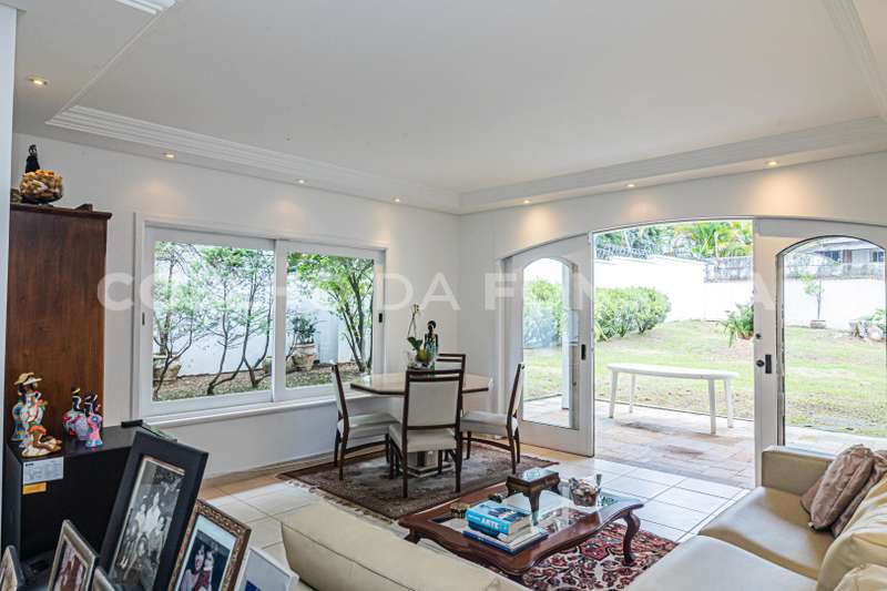 Maravilhosa casa térrea, localizada em rua tranquila, próxima aos melhores colégios. Living para três ambientes e suítes voltadas para o jardim com sauna.