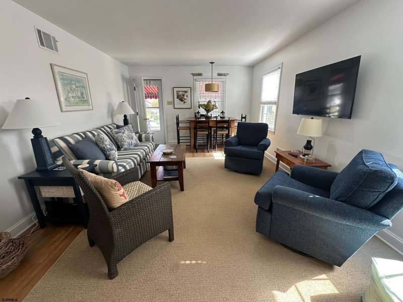 Welcome to your perfect summer retreat located at the beautiful point of Longport. Steps to the beach this single family /duplex style home offers relaxed coastal living with all the comfort and style you need for an unforgettable summer by the sea. This classic beach cottage has 2 bedrooms and 1 full baths on the second floor with multiple decks to watch the sunrise and sunset and watch the boats go by, Hardwood floors, central AC , eat in dining area and living room. The first floor has one bedroom and one full bath additional living room and laundry room. Outside shower and storage. Plenty of off street parking. Do't t miss this one.