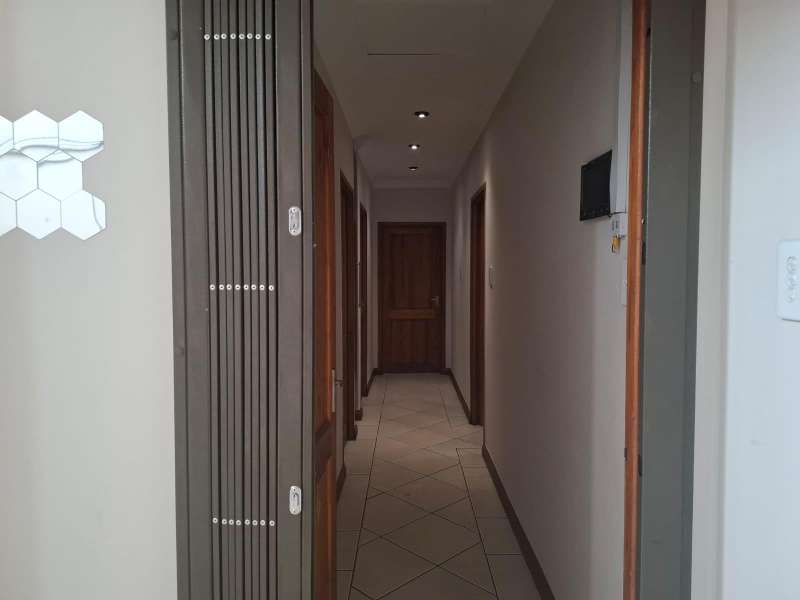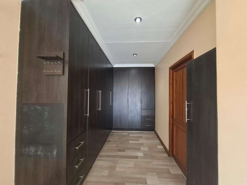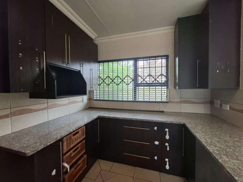MODERN ELEGANCE | 3-BEDROOM | SECURE ESTATE | BEN FLEUR | 582m?? Discover this stunning 3-bedroom property in the highly sought-after Ben Fleur Estate, where comfort, style, and security come together in perfect harmony. With 24-hour security and an access-controlled gate, you can enjoy complete peace of mind in a safe and tranquil environment. From the moment you step through the striking wooden pivot front door, this home makes an impression. The gorgeous double-volume living room, complete with a cozy fireplace, creates a warm and inviting atmosphere. Large sliding doors open onto the patio and garden, making it an entertainer?ÇÖs dream. The dining room flows seamlessly from the living space, while the kitchen will take your breath away with its dark wood cupboards, granite countertops, gas stove, and separate scullery. The bedrooms are thoughtfully separated from the living areas by a Trellidor and door, ensuring privacy and security. Two spacious bedrooms feature laminate flooring and built-in cupboards, with one fitted with an air conditioner. A modern guest bathroom with a corner bath and shower, as well as a convenient linen cupboard, serve these rooms. The luxurious main bedroom offers ample built-in cupboards, air conditioning, and a beautifully designed ensuite bathroom with a bath, large shower, and his-and-hers vanities. Additional features enhance the value and convenience of this home. These include a double automated garage, staff quarters, a storeroom, a 2500L JoJo tank, a water filtration system, a 5kVA inverter, and a generator switch-over. The property is secured with an alarm system, CCTV, and outside beams, ensuring round-the-clock safety. This home is more than just a property ?Çô it is a secure sanctuary designed for modern family living. Every detail has been carefully considered to provide style, comfort, and peace of mind. Ideally located in a prestigious Estate in Ben Fleur, this property is close to schools, shopping centres, and main routes. Don?ÇÖt miss the opportunity to make this dream home yours. Contact us today to arrange a private viewing!