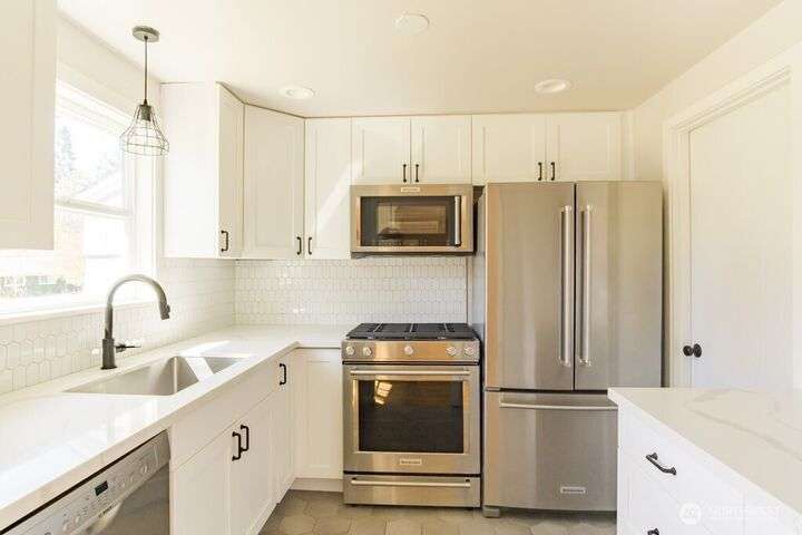 Available Now! Well-maintained & thoughtfully updated home in the highly sought-after Wedgwood neighborhood. The main floor features two spacious, light-filled bedrooms, one with direct access to the backyard, a full bath, & beautiful hardwood floors throughout. Upstairs offers versatile space ideal for additional bedrooms, home office, or bonus room, with ample storage. The fully fenced backyard is perfect for entertaining, the home is situated on a quiet street with a one-car attached garage plus plenty of street parking. Just blocks from cafes, pubs, shops, library, & bus lines. One pet under 60 lbs permitted with a pet deposit (must be fixed, no restricted breeds, puppies or cats). Landscaping service included. Owner is a WA licensee.