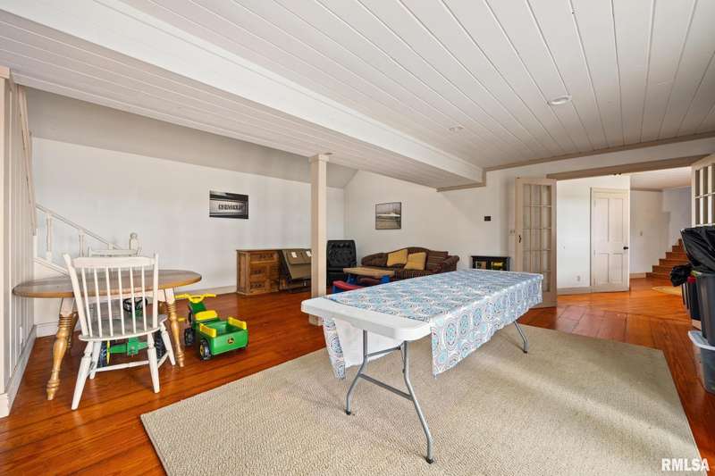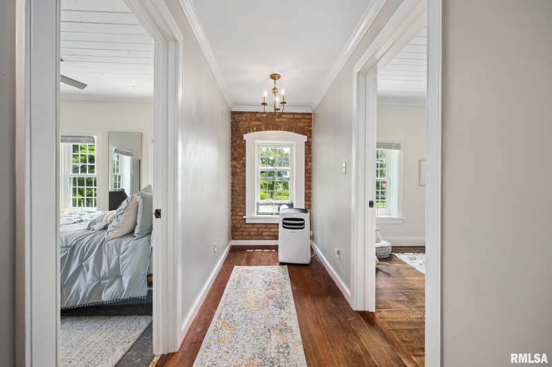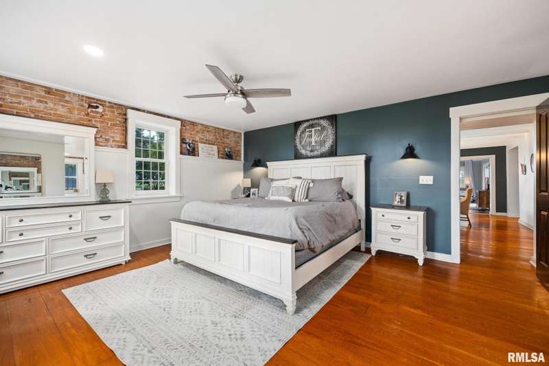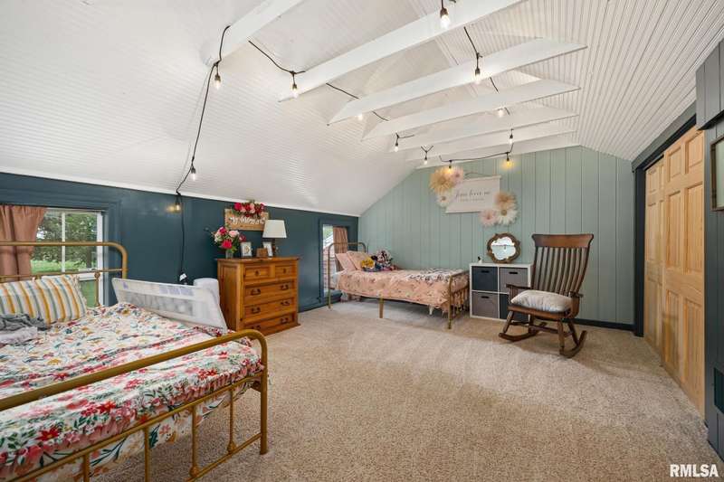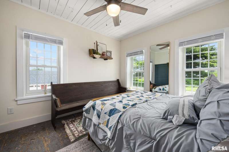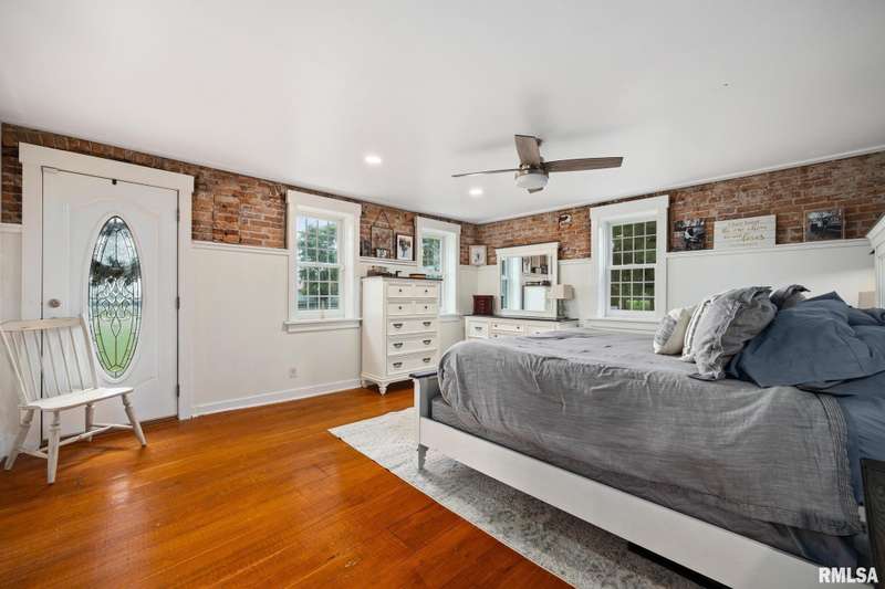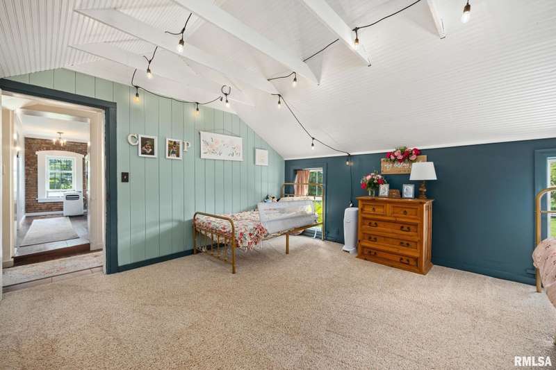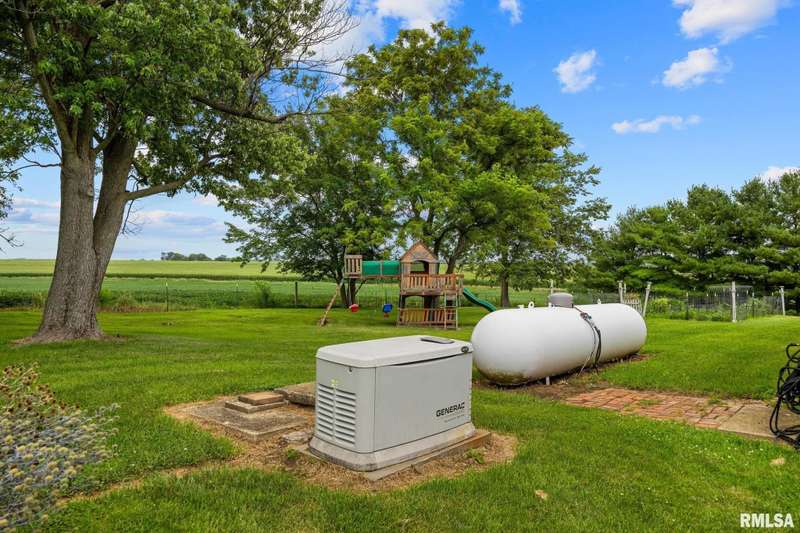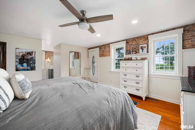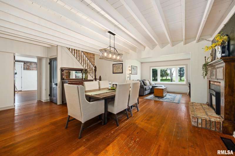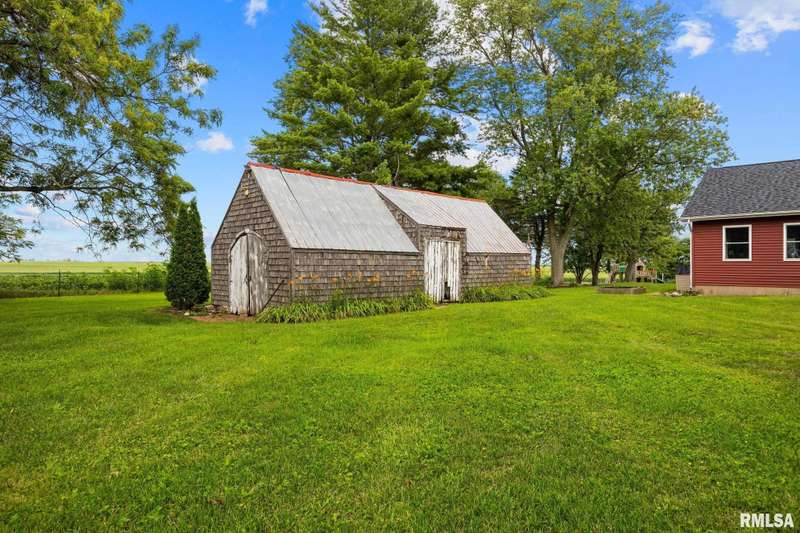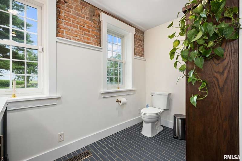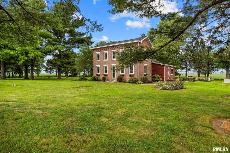 Charming Historic Home w/Modern Updates on 2 fenced acres and 3-car garage/outbuilding! This beautifully updated historic home blends timeless character w/modern comforts. Originally built in mid 1800's as a stagecoach stop, more recent owners have blended the original brick walls and wood floors with lighter, brighter features: large main floor master suite (2023) offers loads of light, porcelain tile floors in bathroom along with Bluetooth light/fan system, walk-in closet and touch faucets, newer windows, 2023 roof/tear-off on house and outbuilding, wood beamed dining room, spacious family room w/vaulted ceiling and slider to backyard, custom kitchen w/granite counters, ample cabinetry space and appliances (dw new 2025). 3-car outbuilding is equipped w/own septic, furnace, a/c, half bath (room to add shower if desired), upstairs as bonus office, small business space or in-law quarters, extra storage space above garage side also. Both house and outbuilding share Generac generator. Outbuilding fridge and 2 freezers reserved by seller. 2 septic systems, (1 for the house, 1 for the outbuilding), swing set stays. Couch/chair/dresser/hutch/tv stay in outbuilding. Shed sold AS IS but would make an awesome chicken coup! Heat pump in house not functioning. Solar system paid off and transferable.