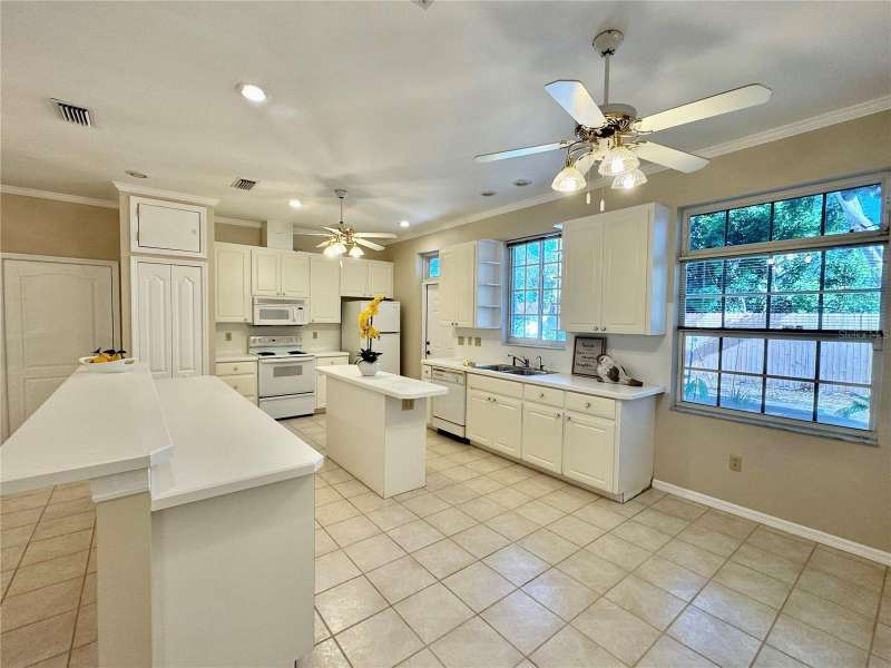 Discover the potential in this well-built 3-bedroom, 2.5-bath home with a spacious 3-car garage and unique split floor plan. Designed originally as the builder's personal residence, this thoughtfully laid-out home features a private mother-in-law suite complete with its own exterior entrance, bedroom, office, and full bath, perfect for guests, extended family, or as an income source. The heart of the home is a large eat-in kitchen, centrally located with views of the fully fenced backyard; is ideal for everyday living and entertaining. Recent major updates provide peace of mind, including a new roof (2023), HVAC (2023), and water heater (2024). Bring your ideas and creativity to transform this solid home into your personal paradise. Plenty of room to park your boat on the extended driveway and enjoy the convenience of extra space both inside and out.