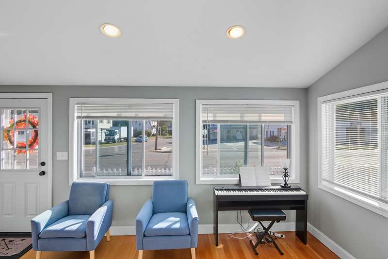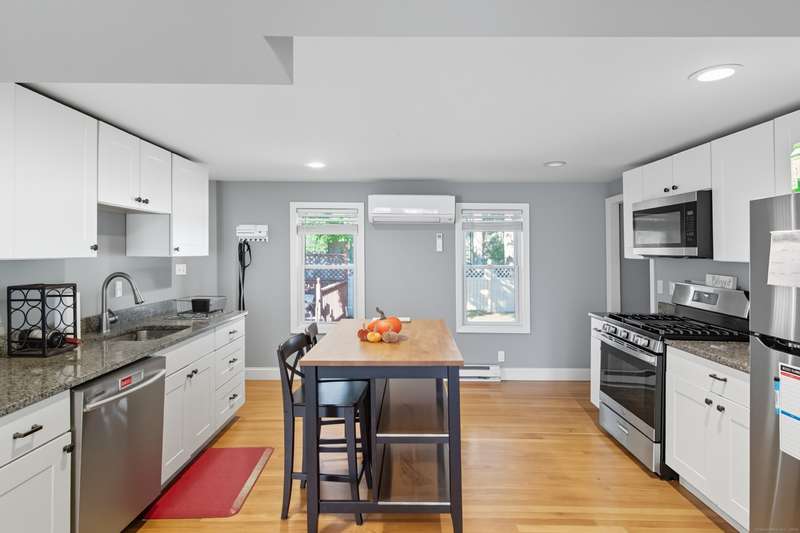 All updated in 2018. 2 Bedrooms (Possible 3) with 2 Full Bath. Colonial walk to Downtown Branford - The Historic Green and Restaurants. Conveniently located for shopping, commuting and all town amenities. Open 1st level floor plan offering a bright and airy atmosphere with a Newer Kitchen and Granite Counters along with a Newer Full Bath. The second level has 2 bedrooms with the possibility of easily adding back the 3rd. The Primary Bedroom was actually 2 bedrooms that was made into a larger bedroom. Finishing off the 2nd level with another Full bath. Lower level is Partially finished with Laundry and offers potential for additional space or Man Cave just need floor covering. Newer Insulation - Newer Windows - Newer Roof - Newer Electrical and Plumbing. 3 Newer Split Units for your Heating and Air. Hardwood Floors throughout. Level grassed backyard with private rear deck excellent for relaxing or grilling. Home is deceptive from the outside. Wonderful Opportunity to live in Branford CT