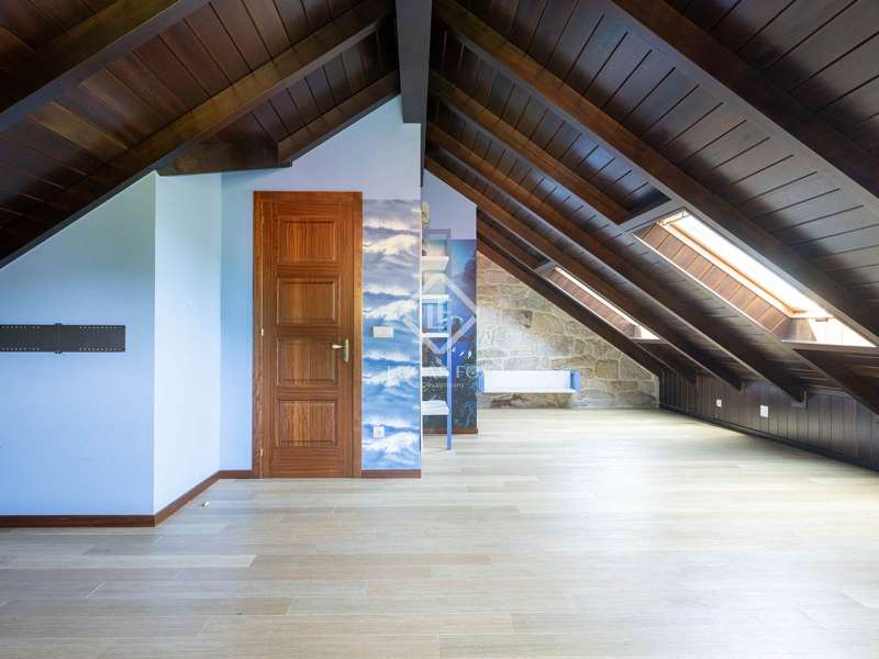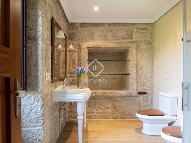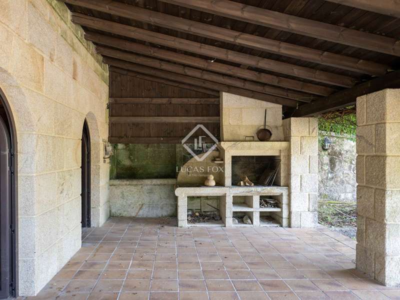 In a small village near the Atlantic coast, we find this charming property, with its first stones laid in 1921 and renovated in 2011, updating the interior area with modern bathrooms, a kitchen, flooring, and paint. The villa is situated on a plot measuring approximately 3,400 square metres. There are historical details that still preserve its essence without sacrificing modern comfort. The villa features two levels of space, totalling 236 m². It is distributed over two floors. The main floor features a reception hall that leads to a sleeping area and a small seating area, followed by a living space and library/office. The floor above offers two en-suite bedrooms. On the ground floor, we find the kitchen area, which features a traditional setting. The area is spacious and bright, thanks to its south-facing orientation, which allows for ample natural light. We see a wood-burning oven, perfect for those who enjoy cooking. This refuge offers a large private plot with outdoor terraces and a lovely garden area featuring a nice passage that circles the exterior. We find ornamental stone fountains, outdoor stone sculptures, two grill areas, a winery section, and an outdoor summer dining area. Perfect for outdoor gatherings and events. The villa offers updated technical plumbing, aluminium windows, granite and natural wood finishes that respect the original Galician essence and charm. The views are completely unobstructed, with the mountain as a backdrop. Here, we can only hear the birds singing and the wind rustling through the trees. This would be an ideal property for a family or couples seeking a serene home, or for those interested in converting the villa into a guesthouse. It is a great place to live, disconnect, or undertake a unique rural tourism project. Please contact us for further information.