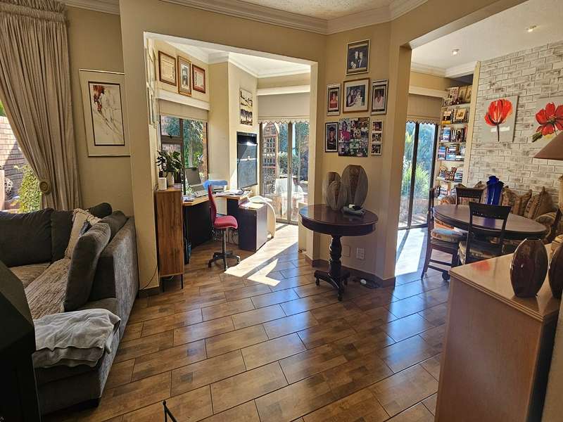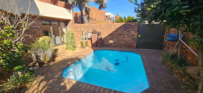 This lovely face brick property is 1 of 4 within an enclosed area - Boasting large open plan living areas with a central fireplace providing warmth to the family room, lounge and dining area. The modern kitchen is beautiful with granite tops, a breakfast nook, attractive cupboards and a separate scullery with ample space for appliances. Stacking doors lead out to the sunny patio overlooking the private and pet friendly garden with a pool. The main bedroom is spacious with a dressing area and a sunny nook to enjoy a book or a cup of tea. The main en-suite bathroom is well sized as well. Upstairs is where you will find 2 more bedrooms with built in cupboards and sliding doors leading to a private balcony. A full bathroom with modern finishes services these 2 bedrooms. Extras includes a linen cupboard and a pajama lounge/study. Complete with a double automated garage and situated close to all amenities as well.