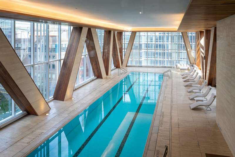 Residents enjoy access to the highest standard of amenities. From the 75-foot swimming pool with a double- height cantilevered atrium to the private fitness spa. Along with 12,000 square foot terrace featuring cabanas, lush green spaces and areas for grilling and outdoor entertaining. Additional amenities include a spacious living room with fireplace, dining room with a chef's professional kitchen, media room, billiards and game rooms, and playroom.