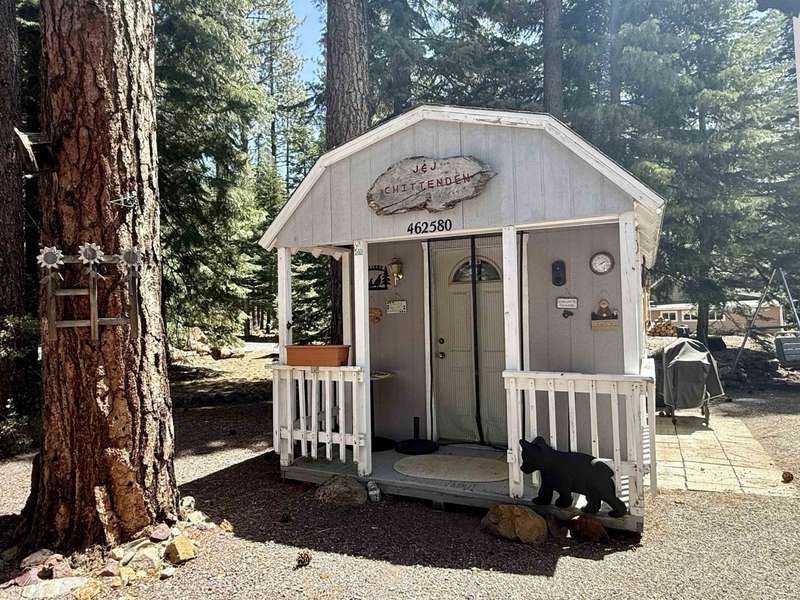 Charming Creekside Mountain Retreat! Nestled along the serene Clear Creek, this darling home offers an idyllic setting where nature and comfort meet. Relax on the shaded, covered front porch and enjoy the soothing sounds of the creek as it winds its way along the western edge of the property toward the Hamilton Branch waterway. Inside, youll find an inviting open floor plan with vaulted ceilings in the living room, a cozy dining area, and an exhibition-style kitchen featuring ample counter space?perfect for entertaining or enjoying quiet mornings in. The spacious primary suite includes a large walk-in closet and a private en suite bathroom. A second guest bedroom provides comfort for visitors, while two exterior bunk houses offer additional sleeping space for family or friends. Surrounded by towering pines, the circular driveway provides abundant parking, including space for RVs. Tucked away at the end of a quiet cul-de-sac and just across the railroad tracks, this home is a true escape?offering privacy, tranquility, and a genuine sense of life in the mountains.