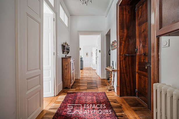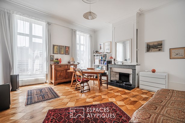 Located in a 19th-century neoclassical building with a listed courtyard, a stone's throw from the flower gardens of Philippeville, this magnificent 214.54 sqm apartment, tastefully renovated, is located on the 2nd floor of the condominium. Combining the indisputable charm of the old with a resolutely contemporary renovation, this rare property offers vast living spaces, high-end amenities and an exceptional living environment.