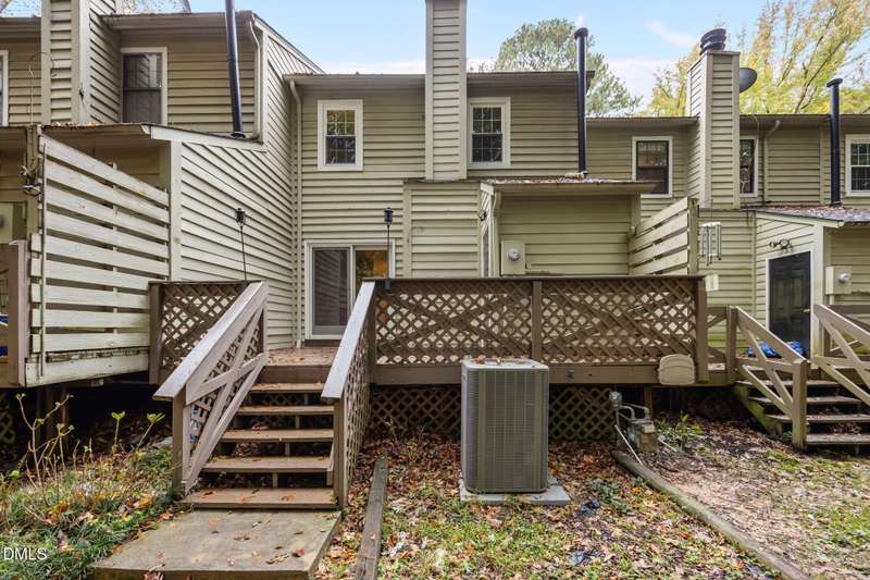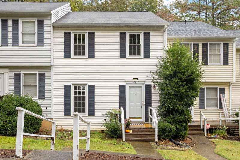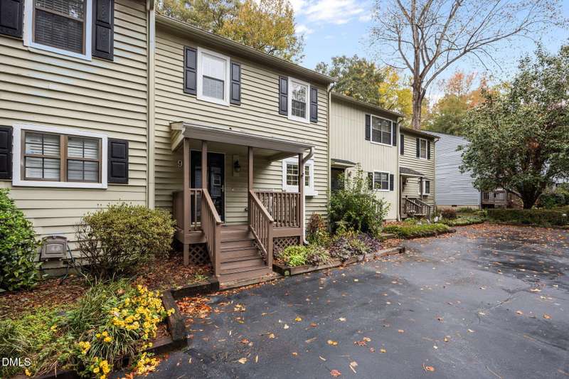 Welcome to Willow Bridge Villas, where comfort meets convenience in the heart of Durham. This well-maintained 2-bedroom, 1.5-bath townhome offers an inviting home with peaceful surroundings. Ideally situated near Duke University, UNC-Chapel Hill, and Downtown Durham, it provides effortless access to shopping, dining, and entertainment while maintaining a sense of calm and privacy that's hard to find so close to the city. Step inside to find a flowing floor plan with stylish flooring, generous living and dining spaces, and a kitchen ready for everyday life or easy entertaining. Upstairs, two spacious bedrooms and a full bath offer a relaxing escape after a busy day. Enjoy quiet mornings or evenings outdoors on your private deck overlooking the wooded backdrop with no homes directly behind you. Take advantage of nearby direct access to the scenic American Tobacco Trail. The front porch provides another peaceful spot to unwind and take in the community's friendly, well-kept feel. With nearly 1,467 square feet of living space and a low-maintenance exterior, this home offers the ideal balance of convenience, connection, and tranquility. Come discover why 9 Willow Bridge Drive feels like the perfect place to settle in and stay awhile. Exciting community updates are underway! The HOA is completing a full exterior renovation including brand-new insulated vinyl siding, crisp white trim, upgraded gutters with guards, stylish black board-and-batten shutters, refreshed deck privacy screens, a relocated mailbox structure w/ new mailboxes, and sleek new house numbers. All with no special assessment to homeowners!