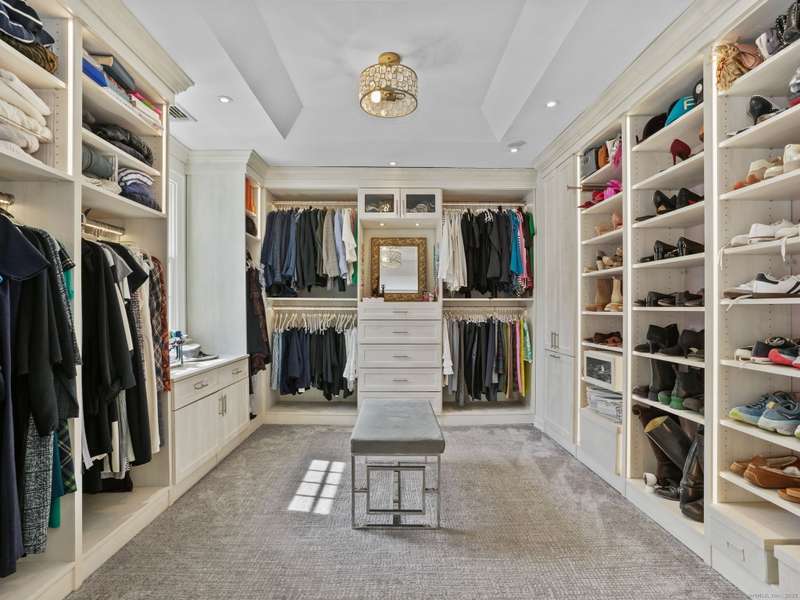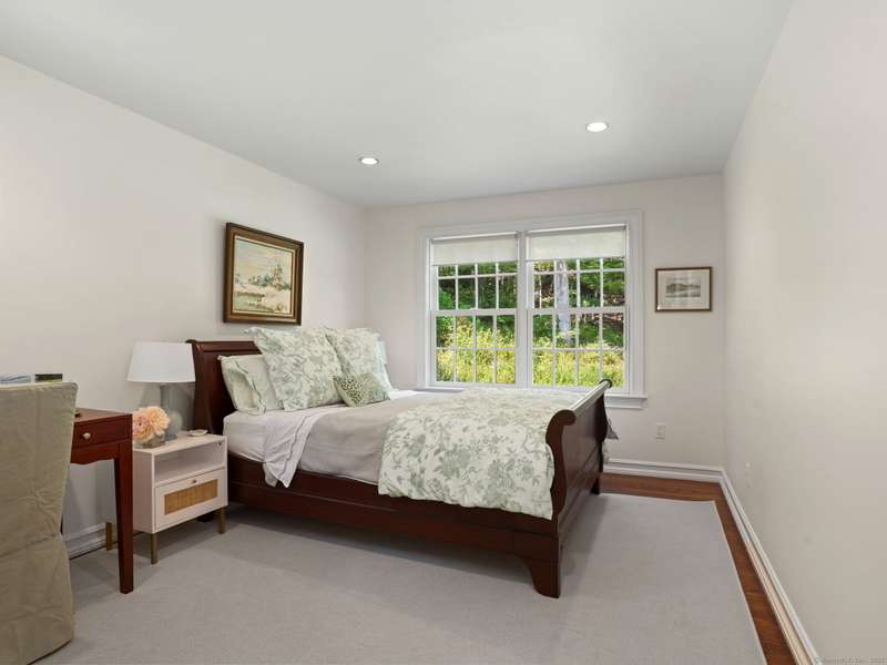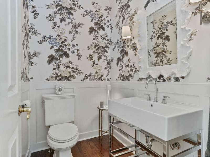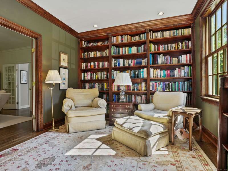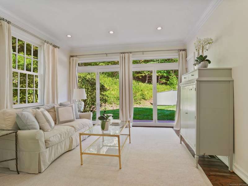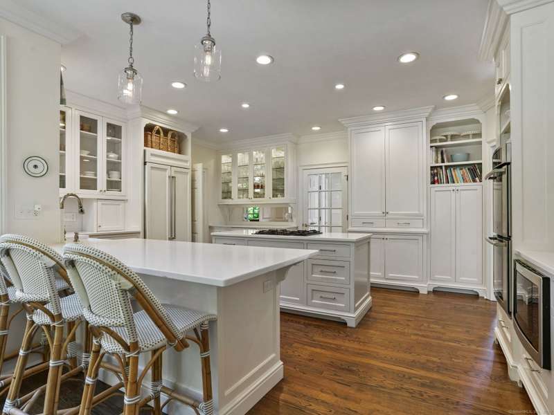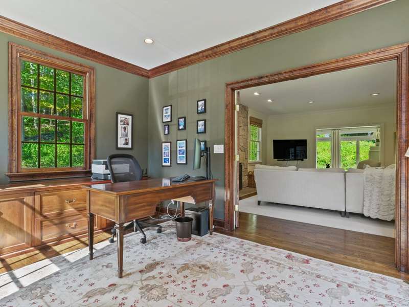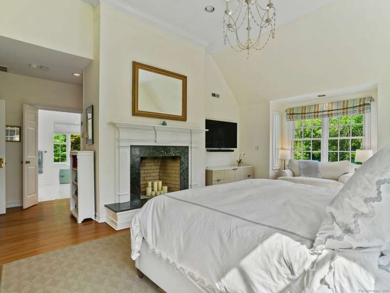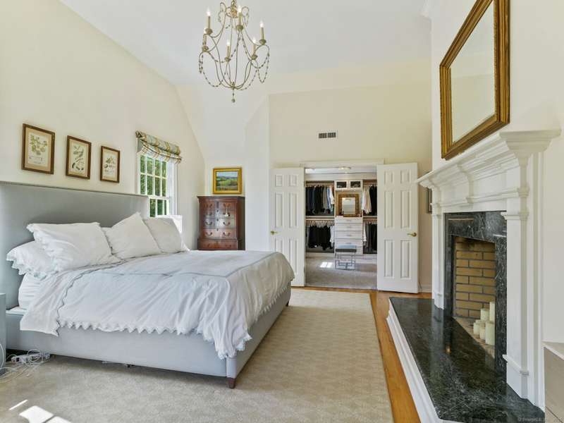 Exceptional 6 bedroom colonial with custom 12-person spa in a private, tranquil setting. Make your way past the 4th hole of Aspetuck Valley CC then turn down the driveway. Pass classic stone pillars as you arrive at this elegant oasis. Be wowed by the timeless curb appeal & extensive masonry. Light streams in through the 2-story window in the welcoming foyer. The formal living & dining rooms share an impressive back-to-back fireplace as well as walls of windows & French doors. The gourmet kitchen is a show-stopper featuring inset custom cabinetry, top-of-the-line appliances, quartz tops, 2 drink drawers, & endless storage. Gather by the stone hearth in the family room or relax in the sunny back den (w/ full bath). Work from home in the handsome front office with its built-in bookshelf wall. Very practical mud/laundry room & charming half bath complete the main level. Head out back through one of the many French doors and spend hours all year round on the elegant bluestone patio sitting