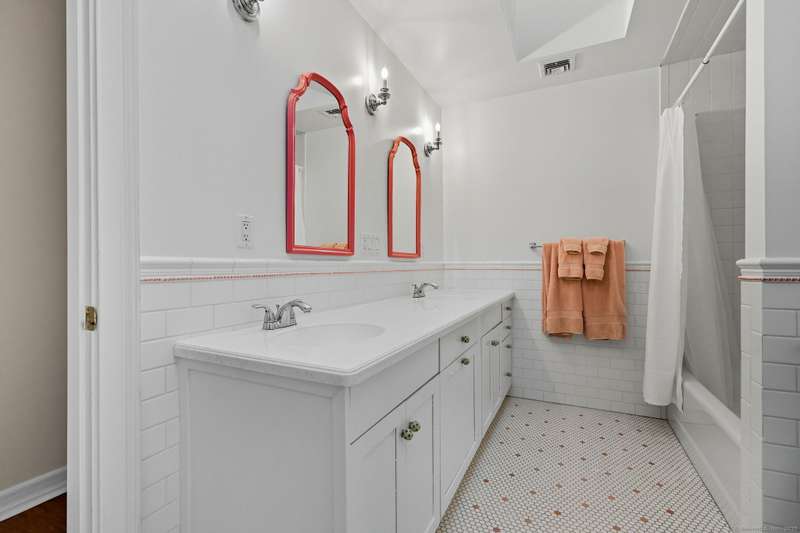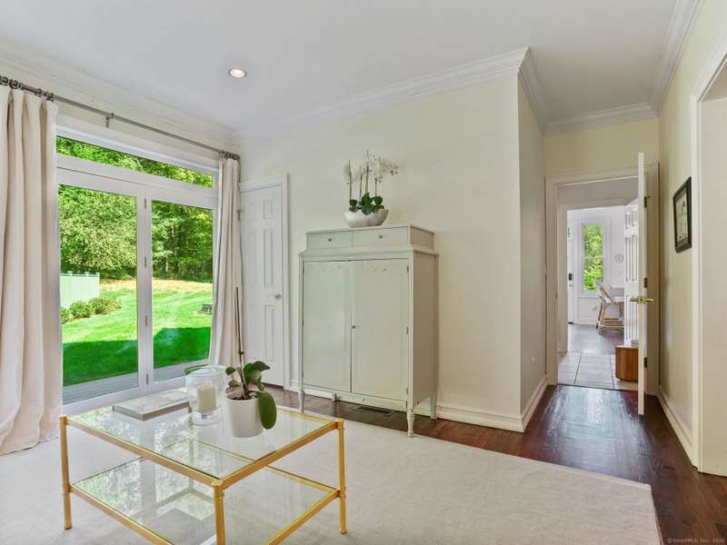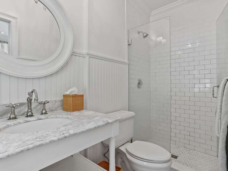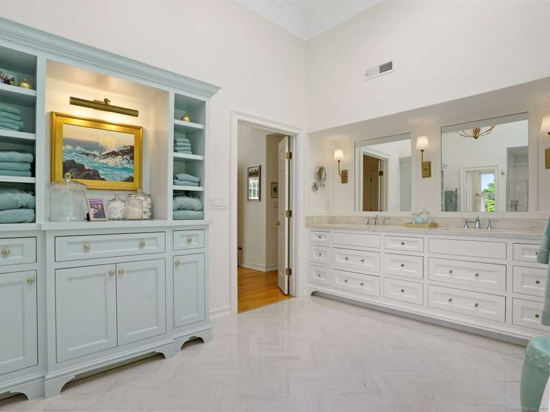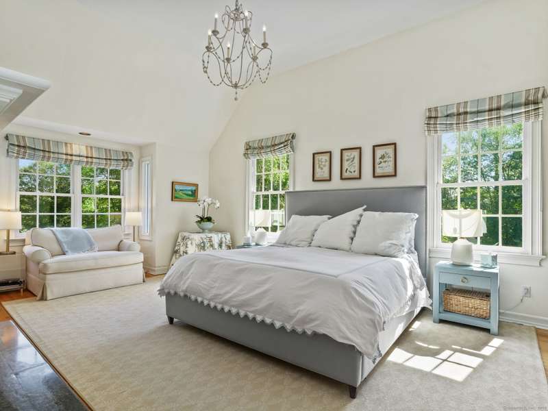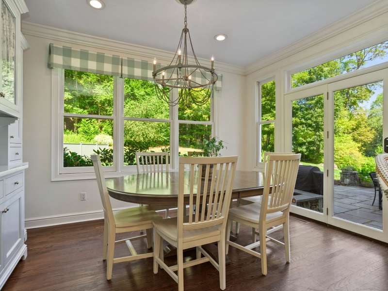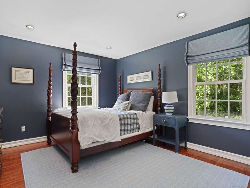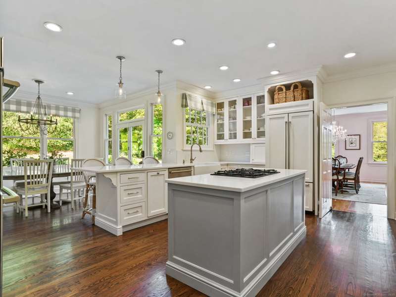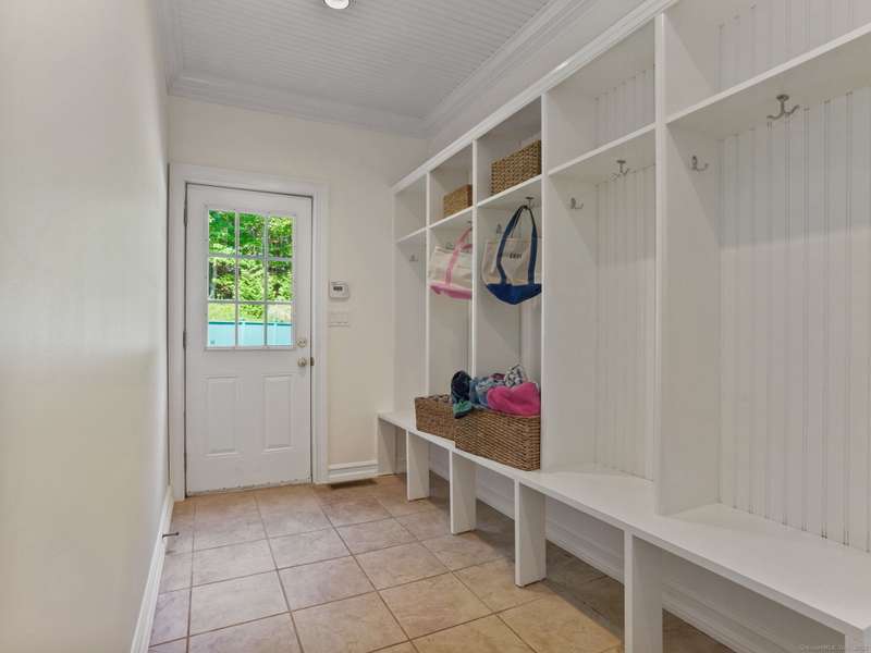 Exceptional 6 bedroom colonial with custom 12-person spa in a private, tranquil setting. Make your way past the 4th hole of Aspetuck Valley CC then turn down the driveway. Pass classic stone pillars as you arrive at this elegant oasis. Be wowed by the timeless curb appeal & extensive masonry. Light streams in through the 2-story window in the welcoming foyer. The formal living & dining rooms share an impressive back-to-back fireplace as well as walls of windows & French doors. The gourmet kitchen is a show-stopper featuring inset custom cabinetry, top-of-the-line appliances, quartz tops, 2 drink drawers, & endless storage. Gather by the stone hearth in the family room or relax in the sunny back den (w/ full bath). Work from home in the handsome front office with its built-in bookshelf wall. Very practical mud/laundry room & charming half bath complete the main level. Head out back through one of the many French doors and spend hours all year round on the elegant bluestone patio sitting