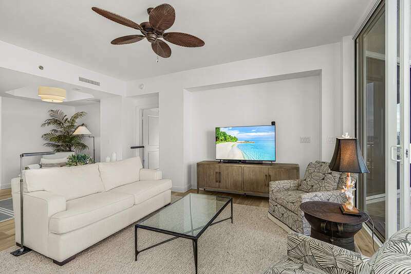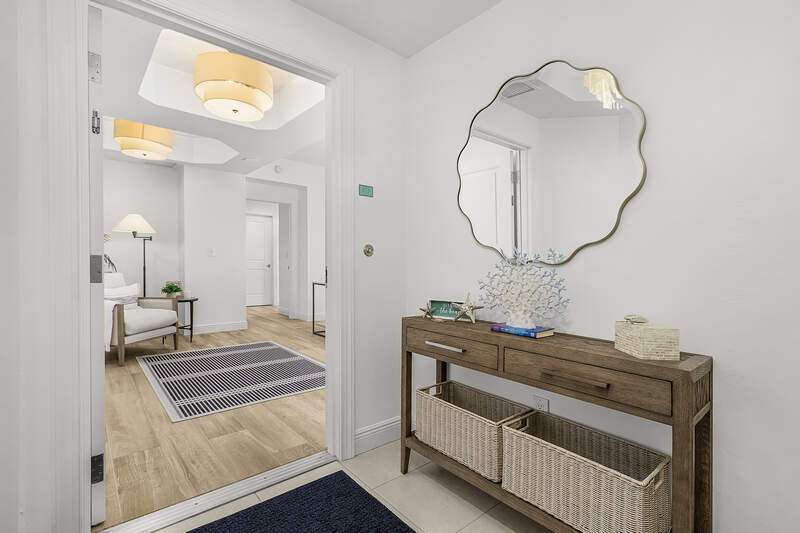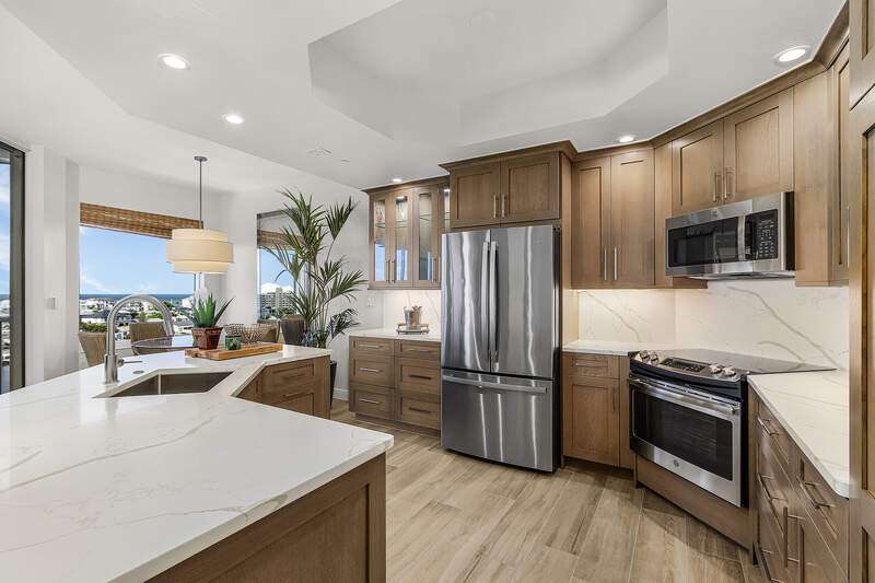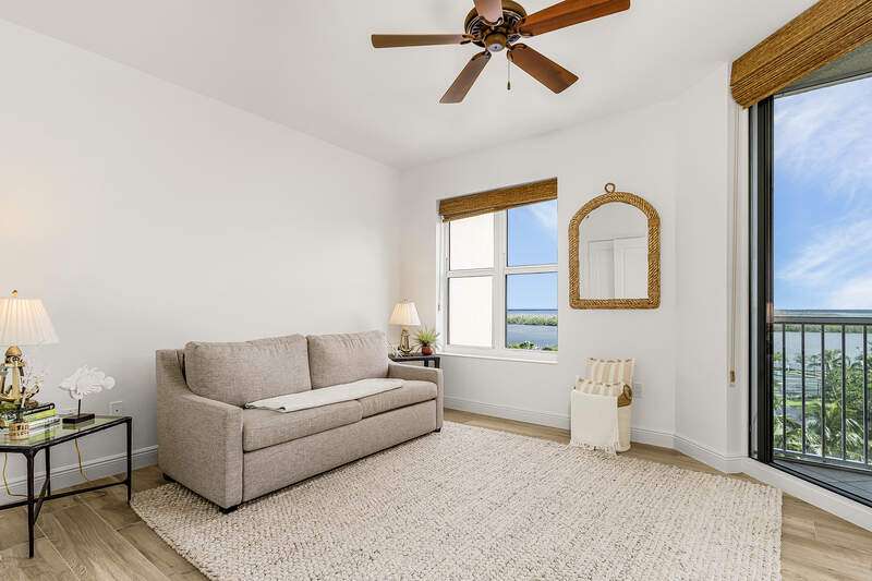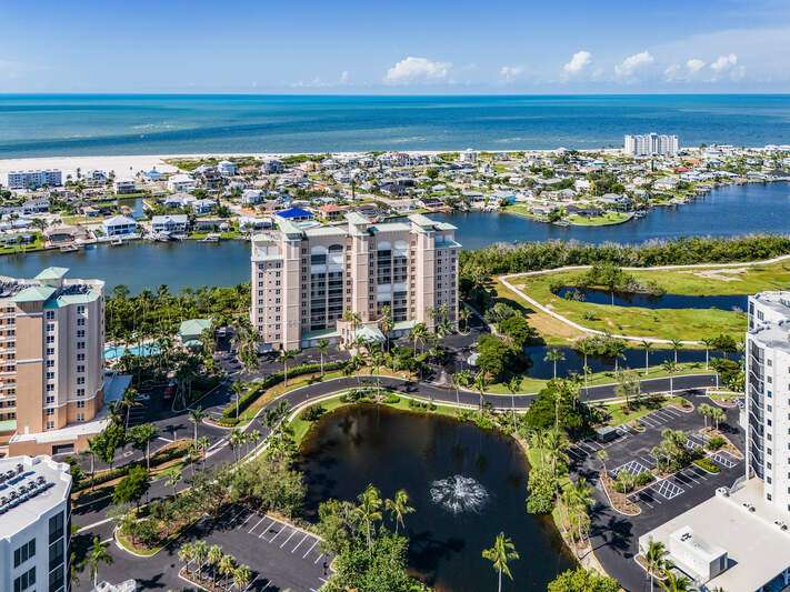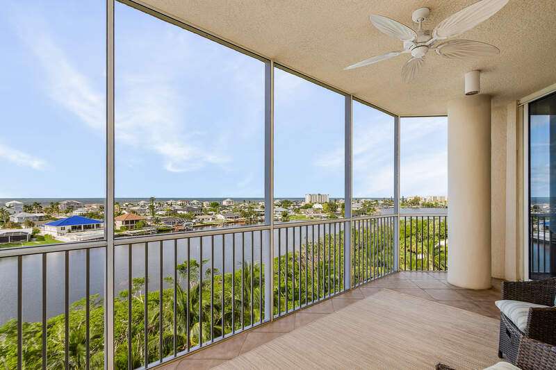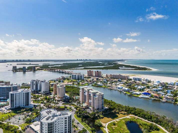 Stunning and fully updated 3 bed/2bath 7th floor condo showcasing panoramic double water views of the Gulf and Estero Bay! Located in Sunset Gulf in the gated Waterside at Bay Beach community. This condo is truly a must see! Take the private elevator to your secured personal foyer. From the moment you enter you will notice the many upgrades. The kitchen has been opened up allowing for a spacious floorpan, perfect for entertaining and enjoying the spectacular views. The kitchen also features new cabinets, quartz countertops and backsplash, lighted glass accents and new appliances. Wake up in the large primary bedroom to gulf views, and enjoy the 2 walk in closets and ensuite bathroom with dual sinks, walk in shower and soaking tub. The split floor plan offers privacy for guests with 2 guest bedrooms and bathroom. One of the oversized lanai's has unbelievable Gulf views with 3 entry points from the living room, dining room and primary bedroom. The second Lanai shows unobstructed view of Estero Bay and is accessible from both guest bedrooms. Have peace of mind with impact resistant doors and windows. Amenities include: 2 Guest Suites, Fitness Center, Community Room, Community Pool, Tennis Courts, Fishing Pier, Walking Paths, Pickleball, Bocce Ball, Chipping Greens, Golf Driving Cage, Deeded Beach Access and Beach Parking. Close to restaurants, shopping, Lovers Key State Park, Bonita Springs, RSW Airport and so much more! Boat slips available for purchase.