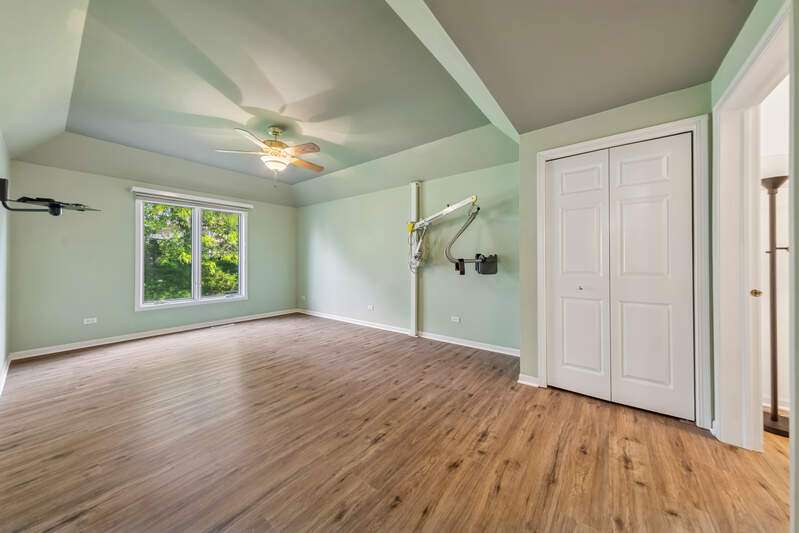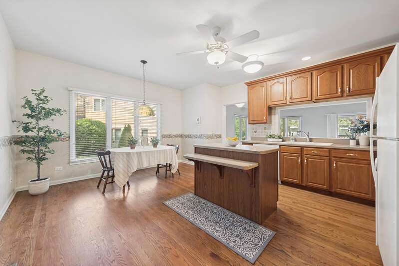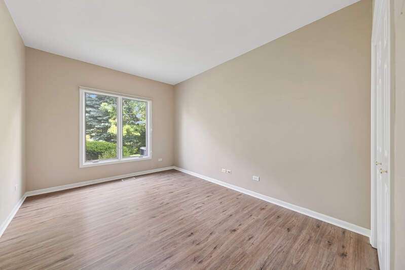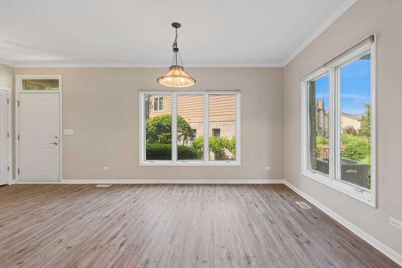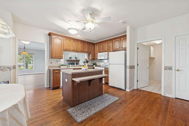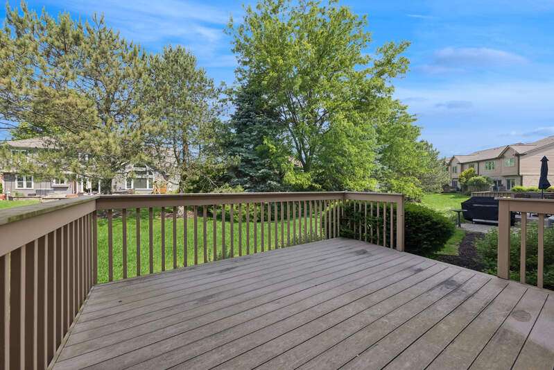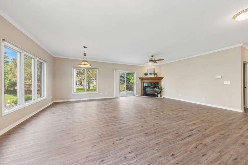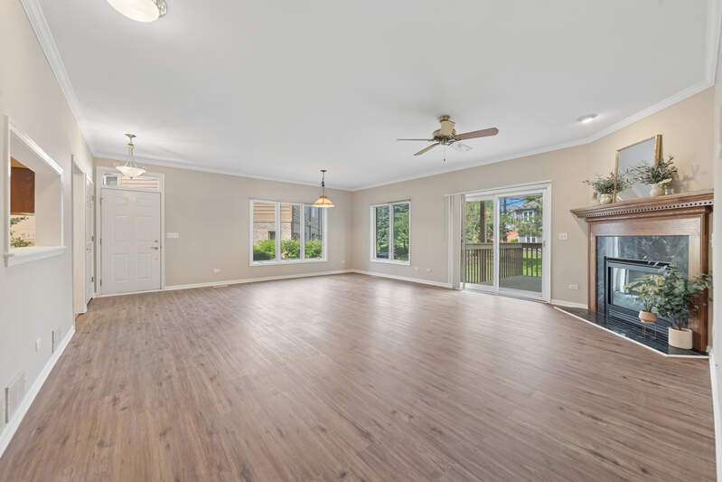 Rarely available, first-floor, ranch-style end-unit townhome with full basement, attached 2-car garage, and a low maintenance, composite deck - all nestled in the scenic Windings of Willow Ridge, a community known for its peaceful, picturesque setting and great location. This home has NO stairs into or out of the main level, wide hallways and doorways, and is ideal for one level living. The layout is spacious and open with high ceilings, large windows, and crown molding throughout. The primary bath features a roll-in shower, and the laundry room is on the main level with full-sized appliances for added convenience. New luxury vinyl plank flooring extends through the main living/dining area and both bedrooms. The open-concept living and dining area includes a cozy gas fireplace and sliding doors that lead to the oversized deck - perfect for relaxing or grilling. Grill with attached gas line can stay! The kitchen offers ample table space and customized island seating, making it both functional and inviting. The generously sized primary suite includes an 8x6 walk-in closet and an accessible en suite bath. The full, unfinished basement adds tons of storage and offers endless potential - already roughed in for a future bathroom and will double your living space if finished. The attached 2-car garage includes a thoughtfully placed, custom ramp that provides easy, no stair access directly into the kitchen. The unit has been freshly painted and all major mechanicals are newer - furnace, A/C and water heater were replaced in 2023. Located in highly rated Pleasantdale and Lyons Township school districts, with close proximity to Burr Ridge Shopping Center, dining, forest preserve trails, rivers and lakes, medical facilities, and easy access to I-55, Rt. 83, and I-294.