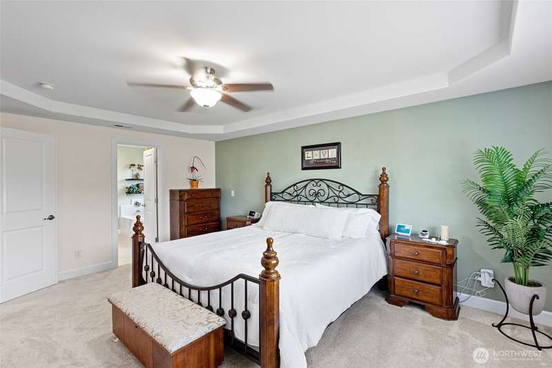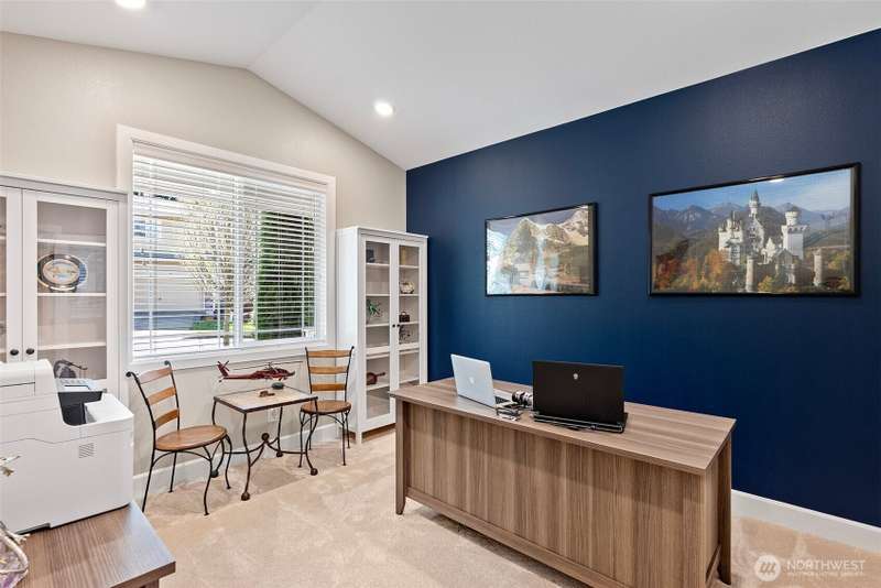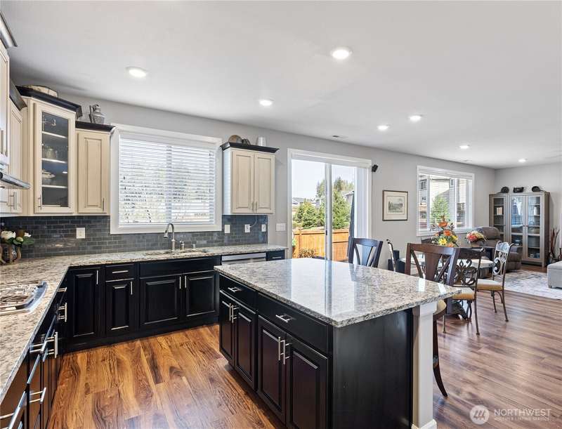 Must see! This turn-key home offers AC, commercial-grade LVP, luxury carpet, custom cabinetry, a whole-house water softener, & smart lighting with cameras. The great room with gas fireplace opens to the chef’s kitchen with slab granite counters, stainless appliances, double ovens, gas cooktop, new dishwasher, pantry, informal dining PLUS a butler’s pantry connecting the kitchen to the dining room. Main level office/den & powder room. Upstairs: four bedrooms including a large en-suite primary, a 15'x18' bonus room, laundry, & guest bath. The fenced yard features a patio with a gas BBQ hookup, raised garden beds, fruit trees & full irrigation.