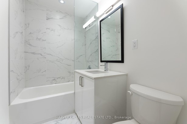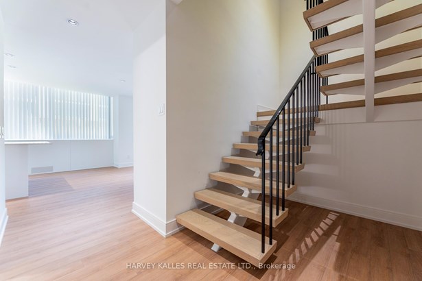 Welcome To The Kingsview Where Luxury, Space, And Sophistication Meet. Making Its Debut On MLS, This Rarely Available Two-Storey Corner Suite At The Kingsview Luxury Apartments Offers Refined Living Designed For Comfort, Elegance, And Ease. With 1,640 Sq. Ft. Of Beautifully Curated Space, This Home Is Ideal For Those Seeking A Low-Maintenance Lifestyle Without Compromising Space. Tucked Behind Lush Landscaping And Mature Trees, This Quiet Boutique Building Feels Exceptionally Private Yet Sits Directly Across From The Humbertown Shops, Offering Everyday Essentials Like The LCBO, Shoppers Drug Mart, Gourmet Grocers, Cafés, And More. Inside, The Main Level Boasts A Spacious Living And Dining Area Framed By Oversized Windows And A Walk-Out To A Private Terrace Ideal For Hosting Or Starting Your Day With A Quiet Cup Of Coffee. The Kitchen Features Full-Sized Appliances, A Central Island With Breakfast Bar And Extra Storage. A Full 3-Piece Bathroom On The Main Floor Adds Rare Convenience Should You Have Guests Stay In The Den. Upstairs, You'll Find Three Spacious Bedrooms. The Primary Bedroom Has A Walk-In Closet, Separate Accessory Closet And An Ensuite Featuring A Step-In Rain Shower With Built-In Bench Seating. Down The Hall, You'll Find Two Bright Bedrooms Both With Large Wardrobe Closets. The Upper Hallway Offers Space For Bookshelves, Art Displays, A Compact Desk, Along With A Bonus Linen Closet. The Renovated Shared Laundry Room Is Conveniently Located Within The Building. With Its Thoughtful Layout, Exceptional Square Footage, And Unbeatable Location, This Rare Offering Is The Perfect Fit For Professionals, Families, Or Down Sizers Seeking The Comfort Of A Full-Sized Home Without The Maintenance.