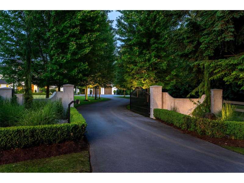 One of Langley's finest gated estates on 2.5 private, manicured acres. This immaculate custom estate is built by Ridgewest Homes, and designed by Su Casa. A perfect blend of luxury, comfort, and function, 8 beds, 7 baths, primary on the main, vaulted great room, private temp controlled wine/scotch tasting room, gym, theatre, plus a 1-bed suite. Unique underground tunnel leads to a bunker-style garage. Resort-style backyard with 20x40 concrete pool, built-in hot tub, California-style sport court, firepit, and covered patio with full outdoor kitchen and fireplace. 6 covered parking. Plans avail for accessory building, build your dream barn or shop! Minutes to Fort Langley, Thunderbird, and HWY 1. A true dream estate built for family, entertaining, and refined country living. (id:58403)