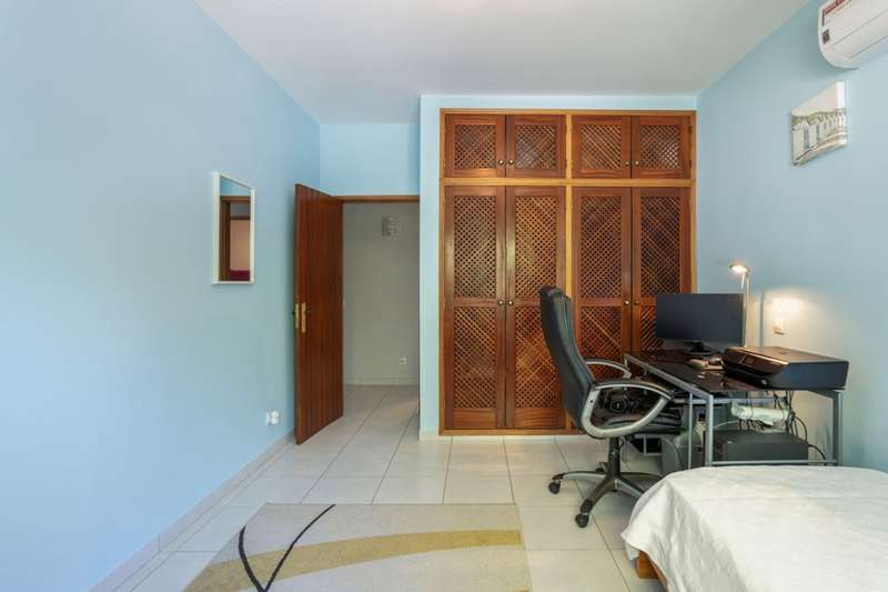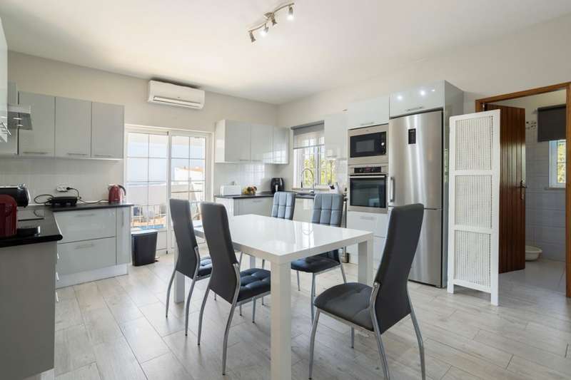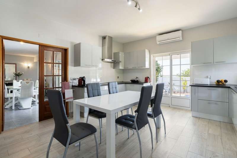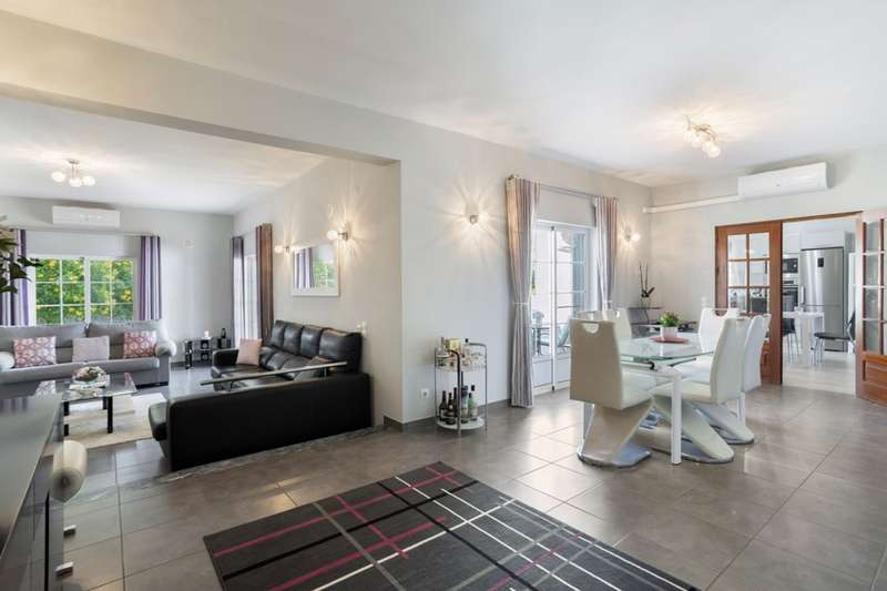 We present this 4-bedroom detached villa , where sophistication, comfort and quality of life come together in a serene setting in Boliqueime, in the Algarve. Functionally distributed over two floors, this property emphasizes the fluidity of spaces and well-being in everyday life. The entire main living area - including the social area, kitchen and bedrooms - is conveniently located on the ground floor, allowing for practical and comfortable living without the need to climb stairs. Outside, the spacious gardens blend harmoniously with the heated swimming pool, creating the perfect setting for moments of pure relaxation in the late afternoon, equipped with a barbecue area that invites you to enjoy pleasant al fresco meals. The basement has a garage with capacity for two cars, guaranteeing total security and convenience. Equipped with underfloor heating, central heating, air conditioning, central vacuum, solar panels and a complete security system with cameras, automatic gate and video intercom, this villa ensures maximum comfort and tranquillity. Located in a quiet area, but with excellent accessibility, it is close to the town center and easily connected to the National Road 125 and the freeway, allowing you to live in serenity without giving up convenience. CHARACTERISTICS: Plot Area: 1 550 m2 | 16 684 sq ft Deployment Area: 223 m2 | 2 400 sq ft Building Area: 335 m2 | 3 609 sq ft Bedrooms: 4 Bathrooms: 4 Garage: 2 Energy efficiency: B- FEATURES: Detached house 4 bedrooms 2 suites Garage Swimming pool