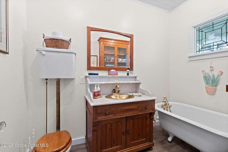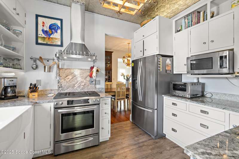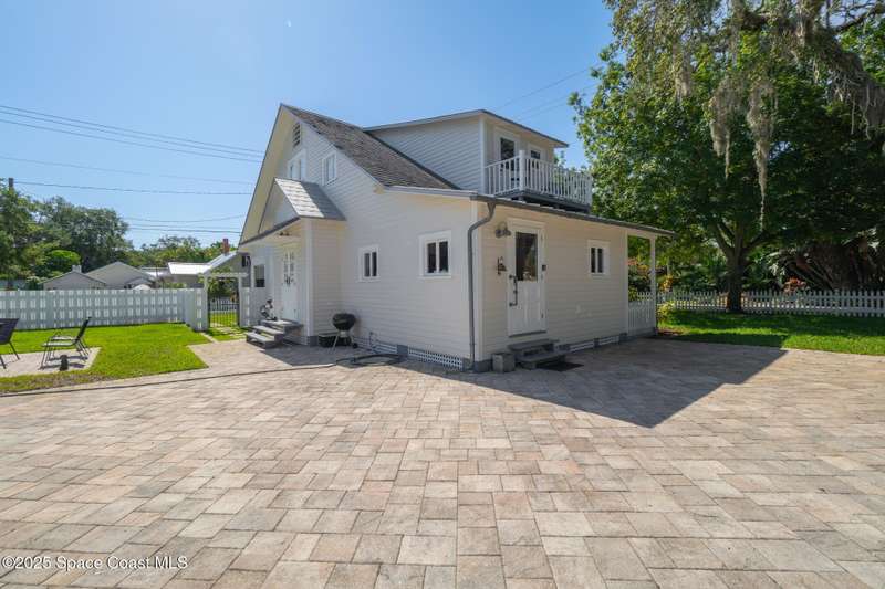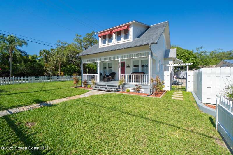 BACK ON THE MARKET - Buyers couldn't fulfill the sales contingency to sell their home. Historic Charm Meets Modern Functionality in the Eau Gallie Arts District. Step back in time without sacrificing comfort in this beautifully restored 1928 historic gem, nestled in the heart of the vibrant Eau Gallie Arts District. Fully remodeled in 2014 to reflect its original period style, this 3-bedroom, 3-bathroom home blends timeless elegance with modern convenience-and offers a versatile flex room for your evolving needs. From the moment you arrive, the charm is undeniable. A classic white picket fence wraps around the spacious 1/3-acre corner lot, which features two entrances, a paved driveway, and ample parking for residents and guests alike. Whether you're hosting art walk gatherings or family barbecues, there's room for it all-including up to two RVs, with existing electrical and sewer hookups ready to go. At the rear of the property, a detached 2-car workshop presents exciting possibilities convert it into a spacious possibilities - convert it into an in-law suite, guest a spacious in-law suite, guest house, or a private studio. There's also a detached shed that's just begging to be transformed into the ultimate she-shed or creative retreat. Make your way up the welcoming front steps and onto the expansive front porch an ideal spot for sipping coffee or wine in a rocking chair while watching the world go by under a canopy of mature trees. Inside, the home features beautifully restored hardwood flooring throughout, a formal living room and a cozy family area, a modern kitchen with stainless steel appliances, and a charming butler's pantry for added storage and entertaining ease. The flex room offers great potential as a home office, den, or playroom. Upstairs, you'll find two generously sized bedrooms and two full bathrooms. A third, smaller room is perfect for a nursery, private dressing room, or ensuite extension to the adjacent bedroom. Step outside onto the upstairs balcony to enjoy views of the neighborhood's historic streets and lush greenery. You'll be living just a five-minute stroll from some of Brevard County's trendiest bars, restaurants, galleries, and boutiques. Outdoor lovers will appreciate being less than ten minutes from the beach, as well as nearby boat docks, the marina, and peaceful spots for kayaking.