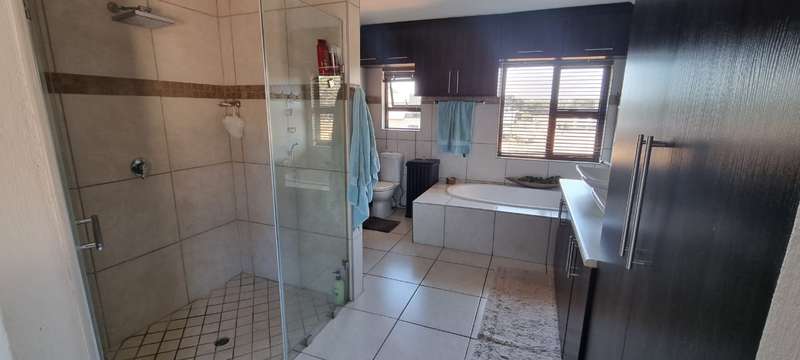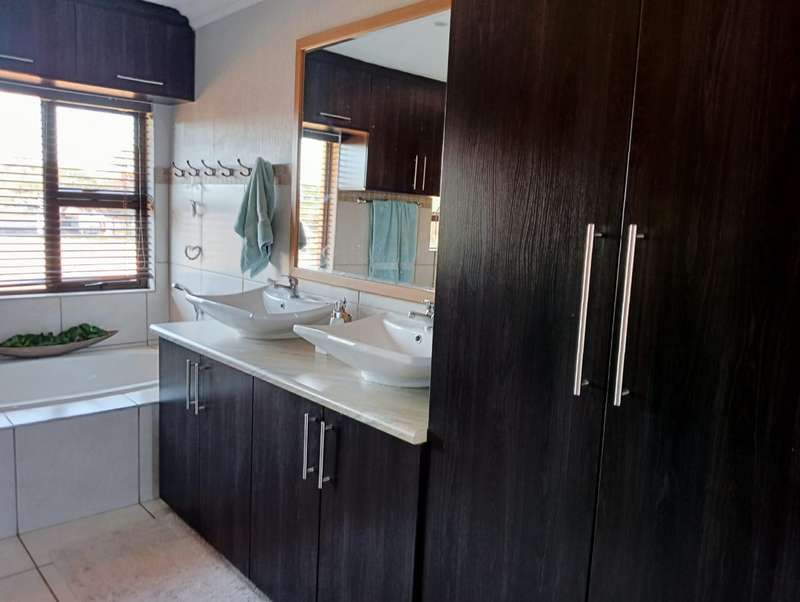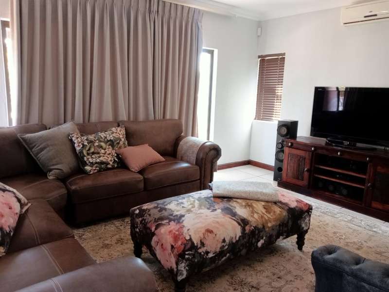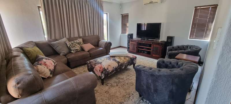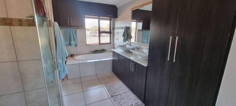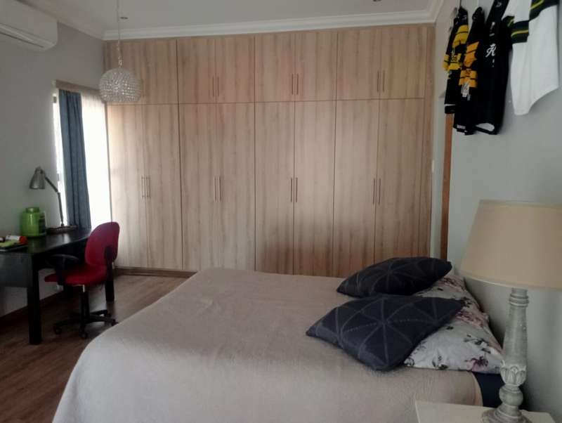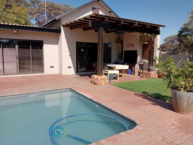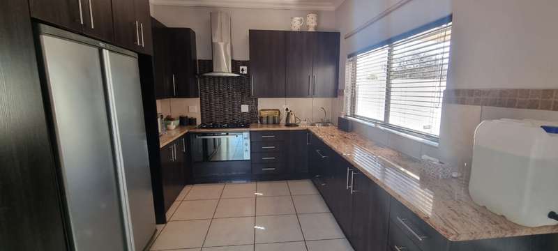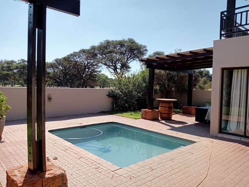 This lovely 4 bedroom home is situated in the Kalahari Golf Estate Kathu. Where nature surrounds you. This home consist of 4 bedrooms and 4 bathrooms, Kitchen, Dining room, Living room, Tv room, Bar & Living area, study and outside braai with pool The main bedroom upstairs with an aircon, built in cupboards and sliding doors that go out to a balcony that see over the beautiful bushveld. This bedroom also have it’s own bathroom with his and hers basin with more then enough build in cupboards a big shower, bath and toilet. Second bedroom also upstairs with an aircon, built in cupboards and an en-suite bathroom that consist of a shower, bath, toilet and basin. The third room with sliding doors and built in cupboards also have an aircon and it’s own bathroom with shower, basin and toilet. The 4th room are very spacious with lots of built in cupboards, aircon and a Kitchen area this room also has a big spacious bathroom with a dressing area with Built in cupboards, a basin, toilet and shower. Kitchen has lots of built in cupboards with granite tops a gas stove and electric oven it also consist of a aircon. Next to the Kitchen is a big and spacious scullery with basin and lots of built in cupboards and washing machine and dishwasher connections with a door that go outside. Dinning room with big sliding doors on sides going to the outside and to the living room. Living room are very spacious with a fire place and nice big windows to bring in natural light with an aircon. Bar & living area to come together with friends and family has a sliding door to the outside braai and pool area. This home also has a Tv room where family come together for movie nights, this room is very spacious with an aircon and big sliding doors to the outside. The study is big and spacious with an aircon. Come and experience the wildlife from the comfort of your own home