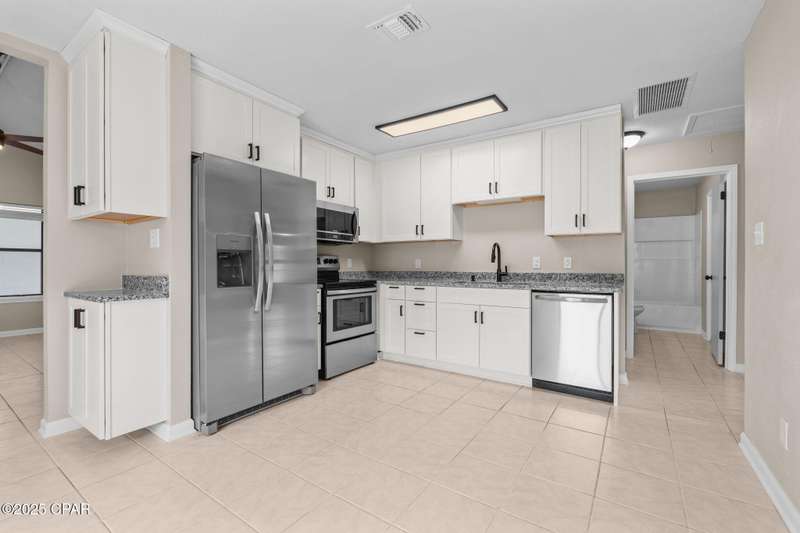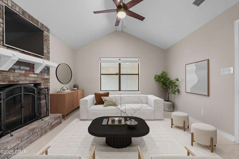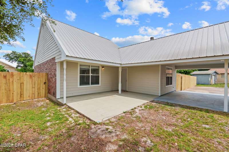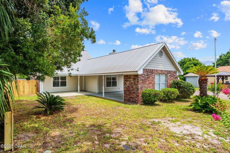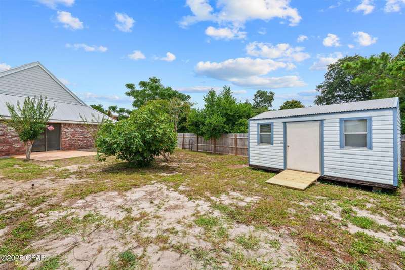 Beautifully Renovated Beach Home | Oversized Lot | West End PCBDon't miss this rare opportunity to own a fully updated home on the desirable West End of Panama City Beach, just a quarter mile from the beach. Located on a quiet cul-de-sac in a golf-cart-friendly neighborhood, this home sits on one of the largest lots in the area--over a quarter acre, nearly double the size of neighboring properties.The home features brand-new flooring in the bedrooms and bathrooms, fully renovated bathrooms with modern finishes, new kitchen cabinetry and a new refrigerator, updated light fixtures, and fresh interior paint throughout. A new wood-burning fireplace insert adds cozy charm, and a brand-new privacy fence surrounds the spacious backyard. There is also a storage shed and an attached carport with a utility room, perfect for storing your beach gear or tools.Just a short walk or golf cart ride to The Carousel grocery, Thomas Donuts, and several top-rated local restaurants, this home offers the perfect combination of location, comfort, and lifestyle. Whether you're looking for a primary residence, vacation getaway, or short-term rental investment, this property is a must-see.