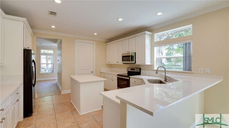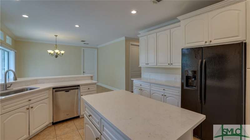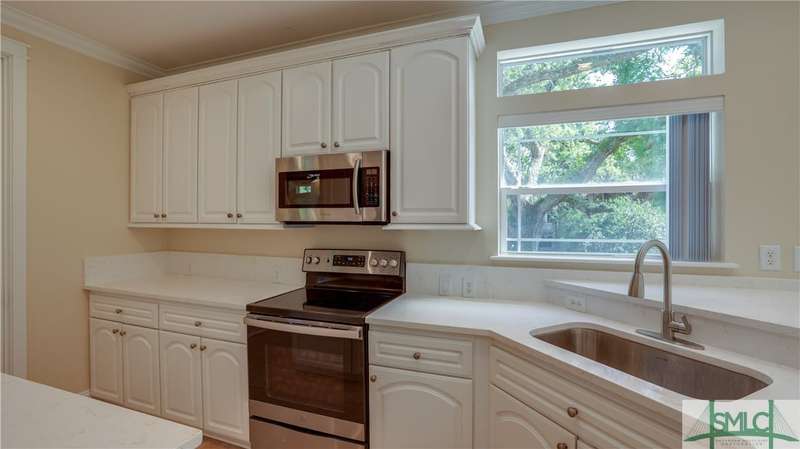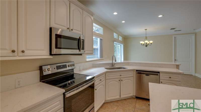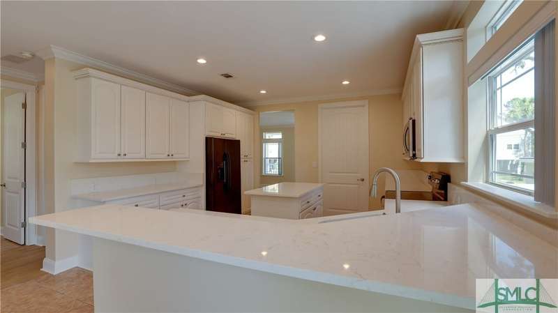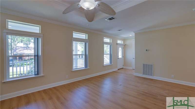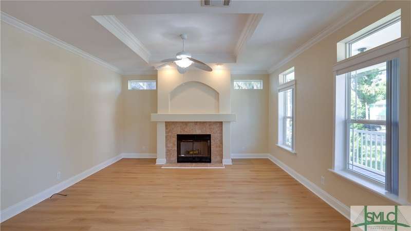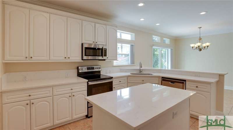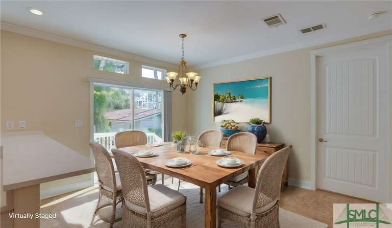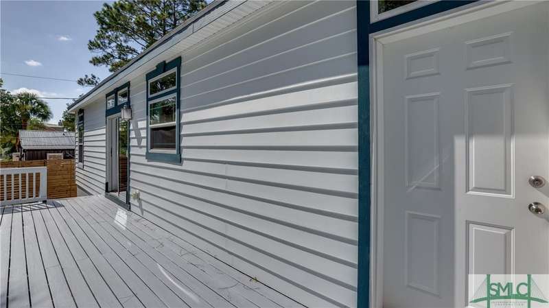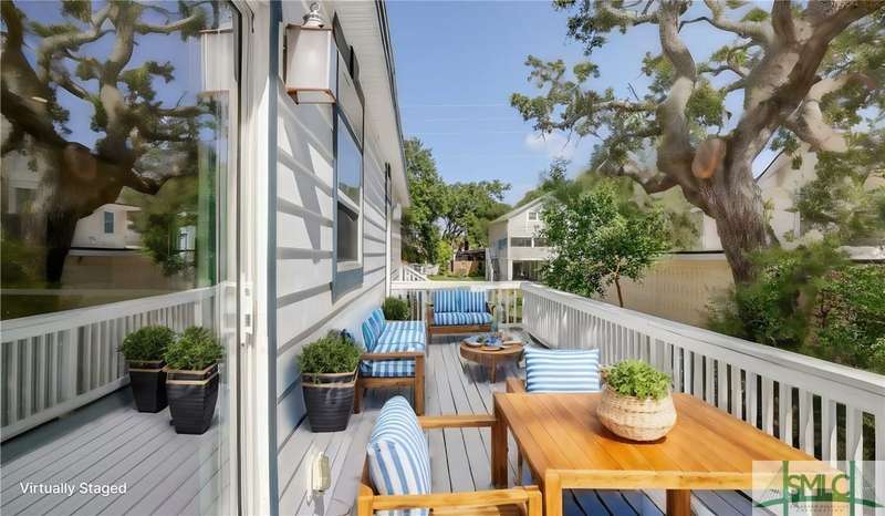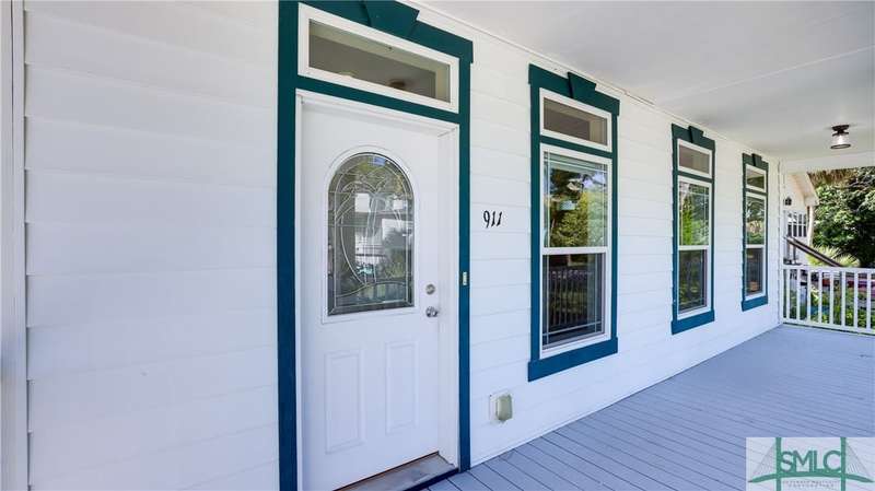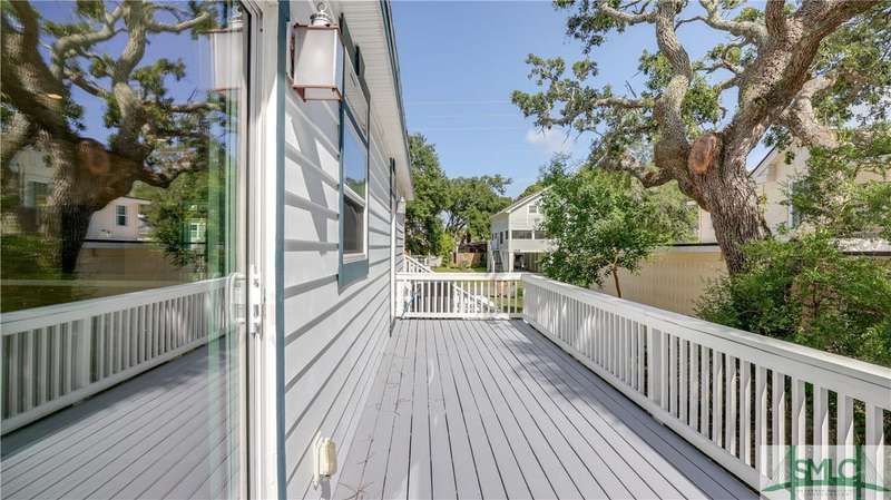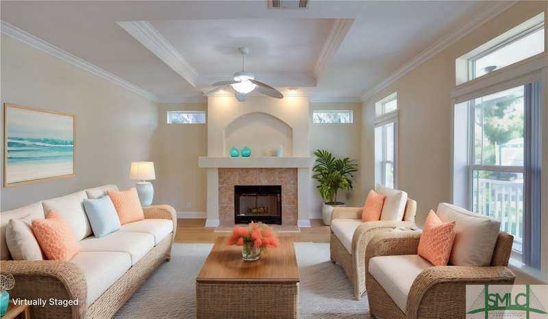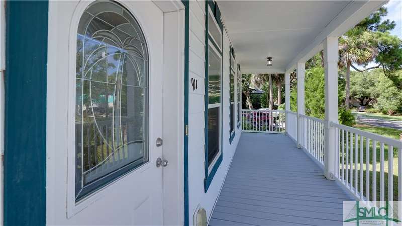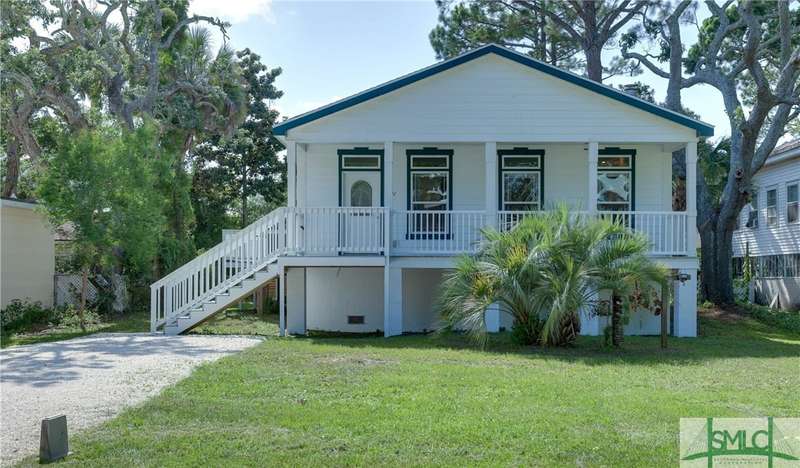 This Elevated Coastal Cottage on Tybee Island is located in the mid island neighborhood between 9th and 10th streets and only a 2-MINUTE WALK to the 10th Street Beach crossover. Perfect for a primary or vacation home with 1710 s/f, 3BR/2BA, fresh interior paint and new vinyl floors. From the covered front porch, you enter the spacious Great Room enhanced by a fireplace and coffered ceiling. The spacious Dining Area and cooks dream of a Kitchen (with tile floors and new quartz counters) overlook the side deck for outdoor grilling and entertaining. The Primary Bedroom w/en-suite Bathroom that features a soaking tub, double vanity, private water closet, step in shower, linen closet and large walk-in closet. 2 generous Guest Bedrooms flank the hall bath. Location, Location, Location! Walk or bike to everything Tybee has to offer from the Lighthouse to be Back River