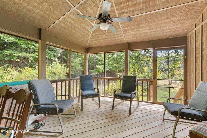 Welcome to your dream home with this incredible property sitting atop a lush, wooded and private 2.19 acres. A paved, tree-lined driveway brings you to this custom designed retreat with two bedrooms and three full bathrooms. You will love the easy flow and open floor plan of this timeless ranch. This home was custom designed by the original owner, with so much thought given to every detail of the layout, finishes and functionality of the house. You will be in awe the moment you enter through the beautiful glass front doors into the welcoming foyer, which opens into the very spacious living room with soaring ceilings offering abundant natural lighting from the surrounding windows. The living room also features a convenient and cozy gas Fireplace, and beautiful custom built-in floor to ceiling shelving.. The huge kitchen is just breathtaking with ample cabinetry, plenty of storage, and gorgeous granite countertops. Between the kitchen and living room there is generous space for a large dining table for family gatherings or entertaining. A large screened porch offers an area for quiet solitude to enjoy your morning coffee or relax in the evenings. The floor plan features split bedrooms with a massive primary bedroom int the back of the house, which offers a large walk-in closet and an ensuite bathroom with a jetted tub and separate shower. The other two spacious bedrooms also have access to private bathrooms. A room off the kitchen serves as a perfect home office space with plenty of windows and built-in desk and file cabinets. An oversized garage with sturdy wood shelving provides useful storage space. Adjacent to the garage entrance is plenty of room for parking boats, RVs or additional automobiles. This location is so convenient to everything--lake access and golfing are less than 3 miles away, while Oak Ridge work sites, dining and entertainment, West Knoxville and Turkey Creek, and Downtown Knoxville are less than 30 minutes away! Schedule your private showing today and make this beautiful home yours! Please Note: This property to be sold ''AS IS''. Septic Permitted for two bedrooms, but there is a bonus or guest room.