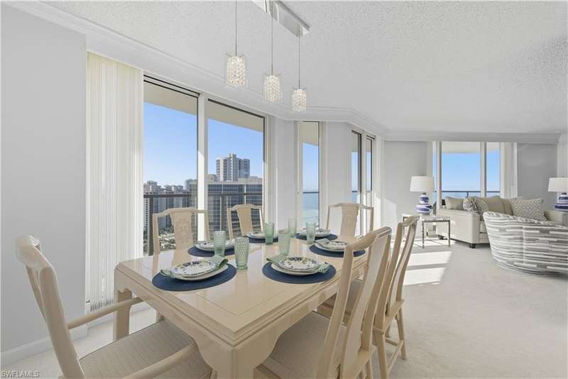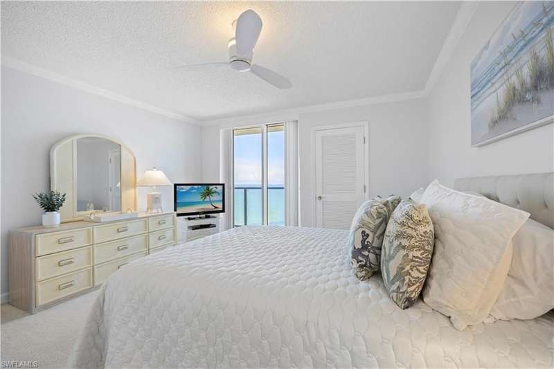This highly sought-after Meridian Club in Park Shore is located on the beach front with sunny SW exposure and gorgeous views of spectacular sunsets over the tropical park and sparkling Gulf waters. Relax on the wrap-around balcony or listen to the soothing sounds of lapping waves on the Gulf shores. The property offers a King in the master, Queen in the guest bedroom and a pullout sofa in the open Den area and full baths. Meridian Amenities include social room, fitness, tennis, a beach side elevated pool deck (recently renovated) pool & spa, outdoor kitchen/grilling/entertainment area & beach boardwalk. 24/7 gated security, within walking distance to Venetian Village shopping/fine dining, & minutes to Olde Naples.