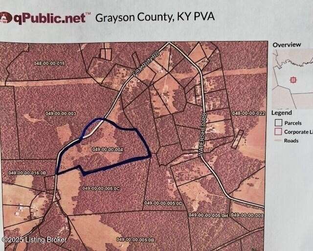 Just minutes from WK Parkway, this 30.05-acre property offers the perfect balance of open space and peaceful forest surroundings. As you travel to this secluded oasis located near the end of the road, you will certainly feel the peace and tranquility of nature and catch sight of deer, turkey, rabbits, water fowl and other wildlife. Featuring over 16 acres of open fields and a variety of majestic mature trees, covering the remaining 14 acres, this undisturbed rural terrain is ideal for weekend hunting or camping getaways, hiking, exploring from an ATV, or the perfect spot to build your forever home. Excellent road frontage allows for making future development simple and convenient. Water is available at the road and electric is available on the property. Whether you envision a peaceful homestead, a recreation retreat, or an investment for the future, the possibilities are endless for this beautiful slice of Kentucky paradise.