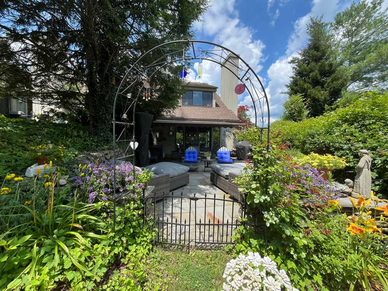 This beautifully updated Franklin 2 Story Townhouse End Unit, is located in one of the most desired ACTIVE 55 + communities in the country. On the walk from your garage to your townhouse, you are invited to gaze at the lush colorful landscape. This Franklin has been fully remodeled with many new updates including recessed lighting and crown molding throughout the entire home. The stylish bright and light gourmet kitchen is a cooks delight. The custom crafted dining room provides a very comfortable space for entertaining family and friends. This home has plenty of natural sunlight with panoramic views from every window and sliding glass doors. The living room has a large wood-burning fireplace, with a cathedral ceiling. Looking out back you have a full view of your Beautiful Blue Stone Patio and view of the meadow. Your over-expanded patio is very private with marvelous stonework and vistas of the surrounding rolling hills. The second bedroom/den includes a custom built window bed for r
