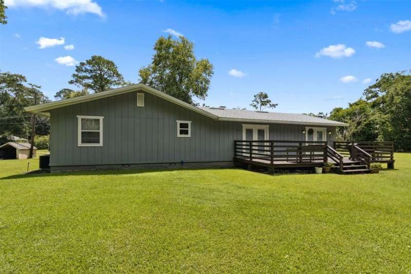 Spacious Living on a Full Acre with No Deed Restrictions & No HOA! Experience comfort, convenience, and room to grow in this beautifully laid-out home sitting on a generous 1-acre lot. Boasting an open floor plan, the large family room is the heart of the home that seamlessly connects with a dining area and an expansive kitchen?perfect for everyday living and entertaining. The roof was recently replaced in 2023! The kitchen features an extended breakfast bar, abundant counter space, and more cabinets than youll know what to do with. Whether you love to cook or just love to gather, this kitchen was designed with you in mind. All appliances are included, so youre set from day one. Step out back and enjoy your own slice of nature on the rear wood deck overlooking wide-open outdoor space?ideal for BBQs, fire pit gatherings, gardening, or just relaxing under the stars. This well-maintained home offers the freedom to live the way you desire, so bring your RV/camper, boat, 4-wheelers, golf carts, large workshop, etc... It's all allowed here! Enjoy all that nature has to offer, while being close to great local restaurants, shopping, 'A' rated school district and only 9 miles to the BEACH!