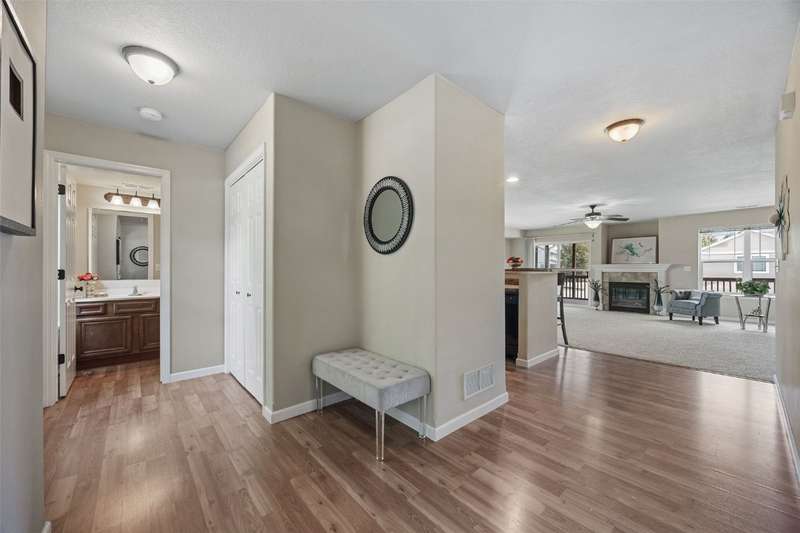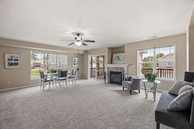This townhome-style condo offers an open layout on the main level with a kitchen featuring plenty of counter space, dining area, and living room with a gas fireplace. From the living room, step out to the deck and screened porch for additional outdoor living. Upstairs, the primary bedroom includes a tray ceiling, walk-in closet, and private bath with a walk-in shower. A laundry closet is conveniently located in the hallway, along with two additional bedrooms and a full bath. The lower level provides a flex space that works well as a drop zone from the garage entry.