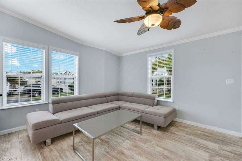 Built in 2017, this beautifully decorated 2 bedroom 2 bath home sits conveniently on a CORNER LOT just steps from the active clubhouse, pool, spa, and tennis courts. The wood-look luxury-vinyl floors, white kitchen cabinets and stainless appliances give this newer home a very modern feel. Riverwoods Plantation is a 55+ community with 639 neighbors and provides you with the convenience of an on-site MANAGER. There are so many amenities for the active resident including volleyball, bocce, pickle ball, tennis, shuffleboard, and horseshoes. For those "social butterflies", the community is brimming with social activities, which are planned by a full-time ACTIVITY DIRECTOR. Riverwoods has exclusive private access to RV and boat storage. There is a boat ramp and kayak launch which makes it convenient for boaters to access the Estero River leading to the Gulf of Mexico. Shopping, dining, theater, and beautiful beaches are only a short drive away. With all that Riverwoods Plantation Resort offers, this is definitely paradise in the sun!