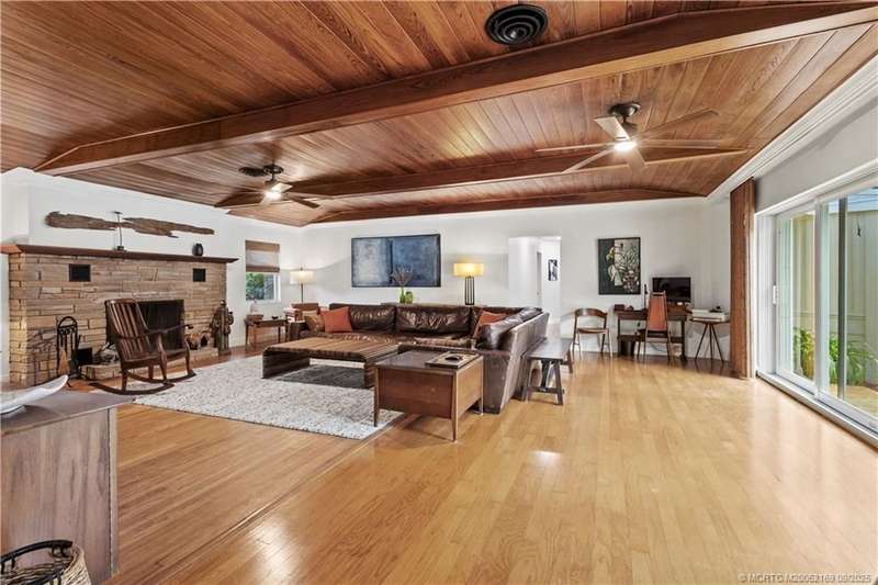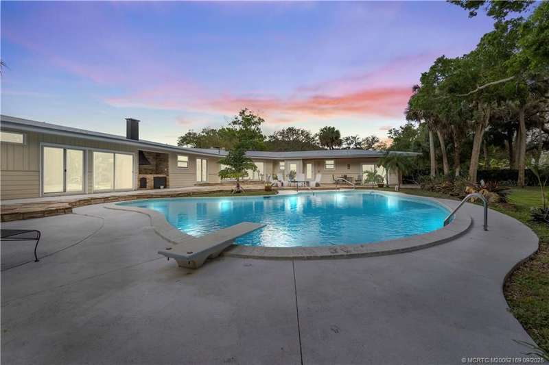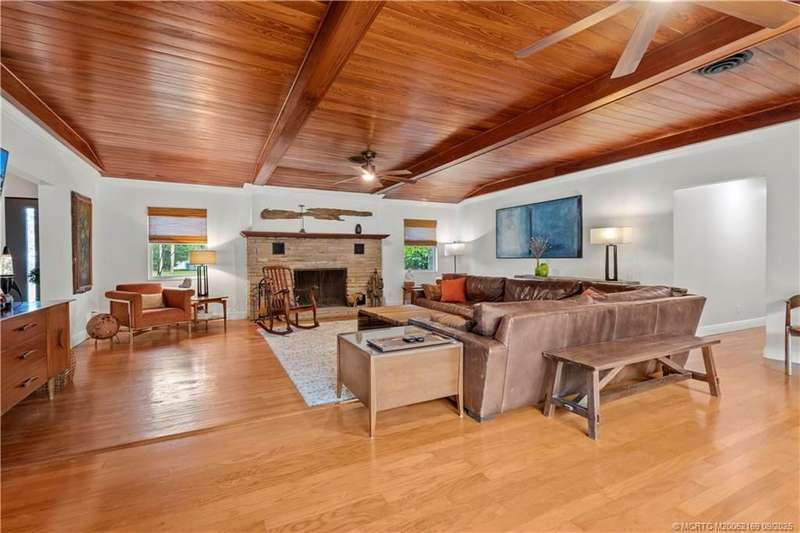 Stunning & cust?m 5BR, 4.5??A p??l h?m? ?n .76 ?cre, just 10 min from the be?ch & w?terfront dining. Perfect for multi-family living, the split floor plan offers comfort & privacy. Inside boasts oak wood, terrazzo & Brazilian red cherry floors, cypress ceilings, crown molding, recessed lighting, & an updated kitchen w/ granite & stainless. Custom details & craftsmanship shine throughout every room. Outdoors, enjoy a lagoon-style pool w/ diving board, beach area, summer kitchen & cabana bath. Impact glass windows, metal roof, 2 new ACs, 2 laundry rooms, 3-car garage, wood-burning fireplace, 2 new water heaters & flagstone patio complete this one-of-a-kind retreat. A truly beautiful home designed for both everyday living & unforgettable entertaining. This exceptional property blends elegance & comfort, offering a rare opportunity to own a spacious, private haven in a prime location.