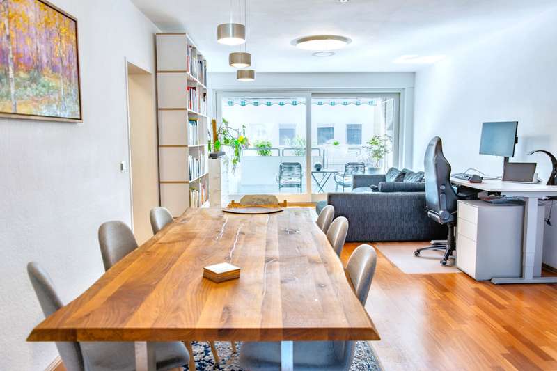 Welcome to your new home! This attractive 3-room apartment on the 1st floor of a well-kept 17-party apartment building from 1979 offers plenty of space and a well-thought-out room layout. With approx. 100 m² of living space, a sunny, south-east-facing loggia and an underground parking space, it offers you maximum living comfort in one of Hanover's most sought-after locations. The apartment welcomes you with a spacious hallway, which can be reached via a separate entrance and an open corridor from the hallway. To the left is a practical guest WC with a window. Opposite is the spacious living room, which immediately conveys a feeling of openness and brightness with its open design and large window front. A sliding door leads directly onto the loggia, from which you can enjoy a beautiful city view. The elegant parquet flooring emphasizes the warm atmosphere of the room. Adjacent to the living area is the functional and modern kitchen. Here you will find a high-quality granite worktop combined with as-new electrical appliances - including an additional wine fridge. The window offers a beautiful view of the well-kept inner courtyard and provides pleasant ventilation when cooking. A hallway separates the living area from the private rooms, creating a pleasant retreat. The first bedroom on the street side is generously proportioned and offers a second direct access to the loggia. Parquet flooring is also laid here. The second bedroom facing the inner courtyard has a practical corner cupboard and an easy-care tiled floor. Between the two bedrooms is the large interior bathroom, which was modernized in 2017/2018. A large shower and an adjoining open utility room provide additional comfort. The entire apartment is heated by underfloor heating; the central heating dates back to 2008. The house is inhabited by a committed and harmonious community in which apartments are rarely for sale. The well-kept green area in the inner courtyard also contributes to the high quality of living. The surrounding infrastructure is excellent: the popular Lister Meile is only approx. 950 meters away, Raschplatz with its transport connections approx. 850 meters and the Ententeich (Eilenriede city forest) only approx. 350 meters. The monthly house fee of € 790.00 for the apartment is made up of 262.05 € for the maintenance reserve, 385.53 € for the heating costs for four people and the other operating costs. The monthly house fee of € 60.00 for the underground parking space is made up of 36.51 € maintenance reserve and the other operating costs. In June 2024, a refurbishment schedule was drawn up for the building with energy modernization measures expected to last until 2035, including insulation of the basement ceiling and façade, replacement of the windows and front doors, hot water supply, ventilation system and a new heating system. We would be happy to provide you with the complete plan. This apartment offers you a unique combination of generous living space, excellent location and a future-proof investment. The apartment is ideal for singles, couples without children or families with a maximum of one child.