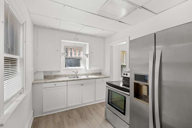 Beautifully updated 2-bedroom, 1-bathroom home where timeless charm meets modern convenience. With almost 1,000 SqFt of well designed space, natural light fills every room, highlighting brand-new flooring and fresh finishes. The inviting living room opens to a sunlit front office, perfect for remote work or a cozy reading nook. The dining area flows into the functional kitchen, offering ample counter space and Stainless Steele Applainces. Upstairs, find two bedrooms with large closets and a full bath. Enjoy warm evenings on the charming front porch. Located on a quiet one-block street, yet just minutes from downtown Kalamazoo, WMU, K College, shopping, dining, and entertainment, this move-in-ready gem offers both comfort and convenience. Kalamazoo Promise Eligible & KPS Schools.