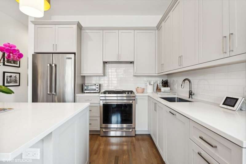 Experience modern luxury in this stunning 3-bedroom, 2-bath residence at The Legacy Lincoln Square, a boutique eight-unit elevator building built in 2020. This one of a kind unit was thoughtfully designed by Jasmin Reese Designs and featured in Modern Luxury Interior Chicago! Overlooking Carmen Ave. (not Lincoln) this unit features soaring 10-foot ceilings, abundant natural light, and a thoughtful open-concept layout creating an inviting sense of space. The designer kitchen features Jenn-Air stainless steel appliances, custom Siteline cabinetry, Caesarstone quartz countertops, and Signature Hardware fixtures, all complemented by white oak hardwood floors throughout. The spacious primary suite offers a spa-inspired bath, while two additional bedrooms provide flexibility for guests, an office, gym, or hobbies. Enjoy attached garage parking with EV charger and unwind on either your own private terrace (west facing for great sunsets) or the finished common rooftop deck with sweeping skyline views. Nestled on a quiet corner in the heart of vibrant Lincoln Square, this home offers easy access to shops, dining, parks, and public transit, all within highly rated Budlong Elementary and Amundsen High School boundaries. Great unit you won't want to miss!