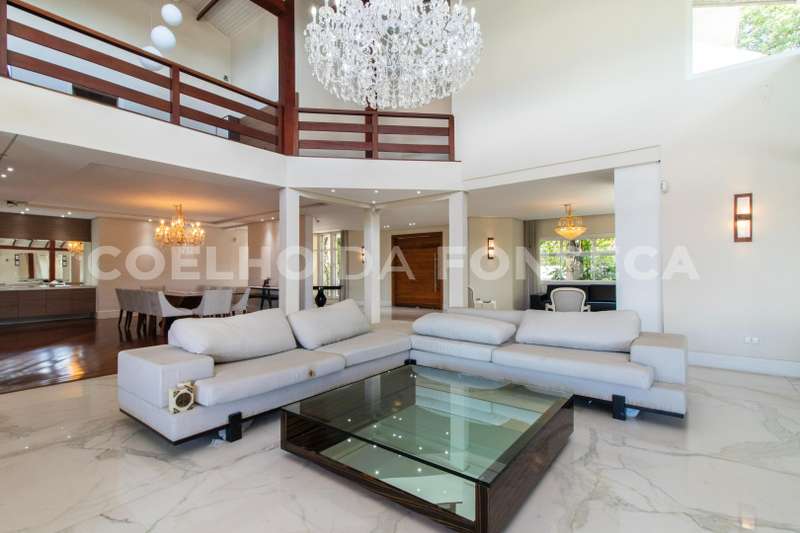A elegância se desdobra na ampla sala social para vários ambientes com pé direito alto, banhada pela luz natural que flui através das numerosas janelas, proporcionando uma vista deslumbrante do exuberante jardim. A cozinha é um convite à culinária refinada, integrada com sala de almoço e uma cozinha gourmet equipada com churrasqueira. Sinta-se sempre confortável com o ar condicionado em todos os ambientes. No pavimento inferior, a casa revela um paraíso de lazer, incluindo piscina, lago com carpas, jardim com cascata, academia, salão de festas, jacuzzi, churrasqueira, espaço com frutíferas e até uma hidroponia para os entusiastas da jardinagem. Além disso, a casa abraça a sustentabilidade, apresentando uma caixa d’água de 5.000 litros para captação de chuva, contribuindo para a preservação ambiental. Duas caixas enterradas com capacidade de 20.000 litros garantem uma reserva abundante. Para completar, tem casa de caseiro com 1 suíte, sala, cozinha e terraço, oferecendo praticidade e privacidade. Ampla garagem e canil. Não perca a oportunidade de fazer desta propriedade extraordinária o seu novo lar. Agende sua visita agora e comece a viver o auge do conforto e sofisticação!