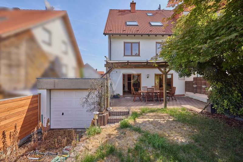 A well-kept semi-detached house is for sale, which was built in around 1996 and has been continuously maintained since then. The property is situated on a plot of approx. 381 m², which offers both sufficient open space and privacy. With a living area of approx. 130 m² spread over five well-designed rooms, this house offers enough space for a variety of living concepts. The attic, which is prepared for conversion, offers a further option for even more living space. The furnishings of the house are of a well-kept quality and yet offer all the amenities you would expect in a beautiful home. The room layout is well thought-out and functional: on the first floor there is a spacious living/dining area with a soapstone stove that invites you to relax and enjoy a cozy get-together, a well-designed kitchen as well as a guest WC and storage room. The living area is flooded with light and offers direct access to the garden via the terrace, which provides ample space for outdoor leisure activities. A barbecue stove invites you to enjoy convivial barbecue evenings. The three bedrooms on the upper floor are ideal for use as bedrooms, offices or guest rooms. Here too, each room offers plenty of space and light-flooded windows ensure a pleasant living atmosphere. The master bathroom, one of the three bathrooms, is also located on the upper floor. You can give free rein to your creativity in the partially converted attic. The daylight shower room has already been prepared, as have the kitchen connections in the large living room with gallery. In the basement there is a laundry room and another living space for apartment-like use, which also has a shower room and separate entrance. In addition, the basement offers a further room that is currently used as a storage room and can also be converted into a kitchen. This generous room layout on four levels offers retreats for the whole family and thus ensures a contemporary living ambience. The garden area of the house offers a variety of uses and can be transformed into a green oasis with a little skill. It offers enough space for garden furniture, a barbecue and play equipment and is also easy to maintain. The garden shed offers enough storage space to store all garden tools in an organized manner. A covered terrace invites you to spend the warm months of the year outdoors. The location of the property offers good connections to the urban environment and all daily facilities. Schools, nurseries, shopping facilities and public transport are nearby and easily accessible. The combination of practical interior design and modern facilities in a family-friendly environment makes this property an attractive option for those interested in real estate. In summary, this semi-detached house with its generous living space and well thought-out room layout offers a comfortable home for families and anyone who wants to live in a well-kept residential environment. Home seekers who appreciate good access to the infrastructure will find their perfect home here. Viewings are possible by appointment and are recommended to gain your own impression of the property.