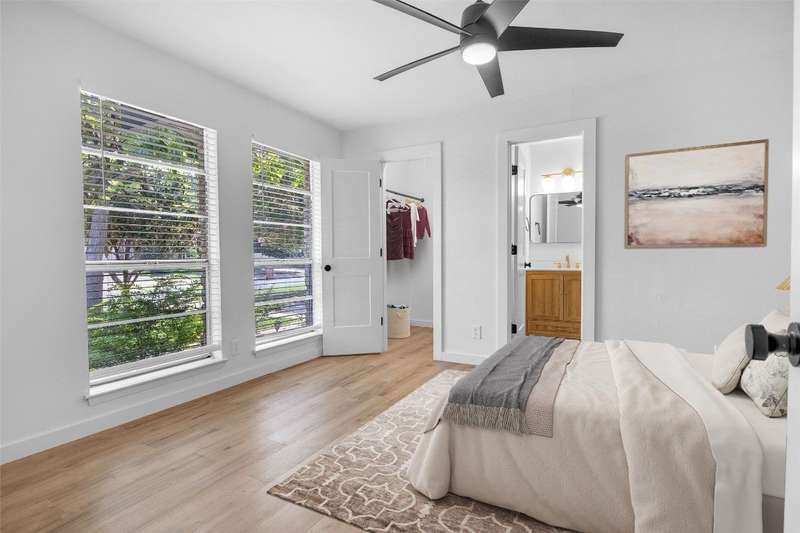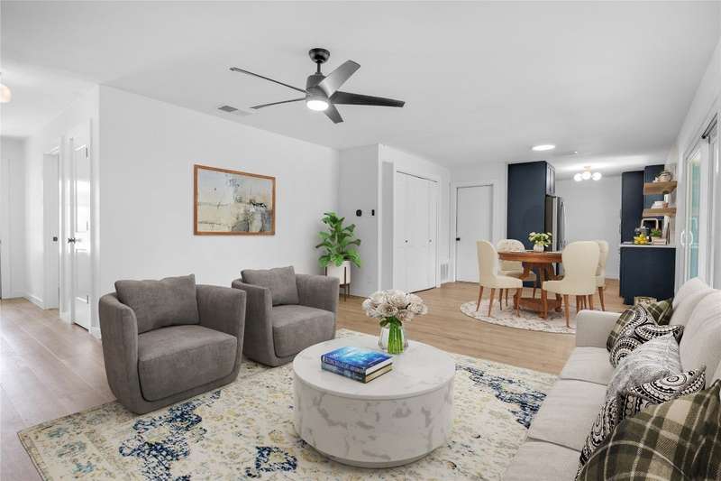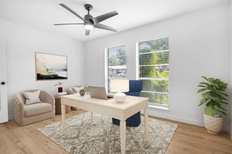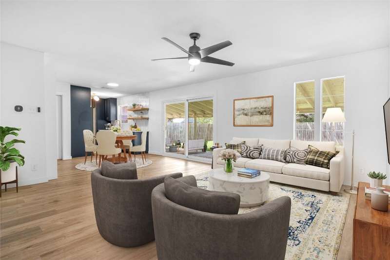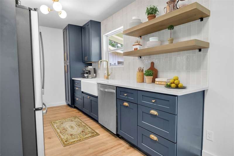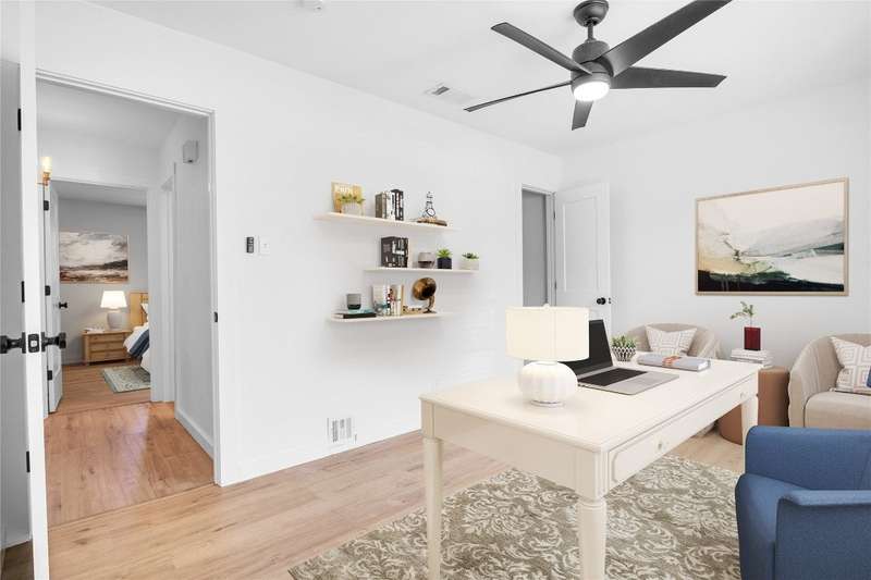 This beautifully renovated 3-bedroom, 2-bathroom home spans 1,254 sq ft and offers a perfect blend of comfort and style. The entire home has been meticulously updated including new vinyl flooring throughout, updated elegant bathroom vanities, modern bathroom tile, and fresh interior and exterior paint. Brand new kitchen from top to bottom including shaker-style cabinets, quartz countertops, large farmhouse sink, tasteful backsplash, and more! The open-concept living and dining areas flow seamlessly together, perfect for cozy cooking nights at home or for entertaining. Enjoy worry-free living with a new roof (2023) and HVAC system (2020). The washer, dryer, and refrigerator are also included! The garage has been converted to include an office space, and the large covered back patio is perfect for outdoor entertaining, or enjoying your morning coffee. Located in the desirable 78745 zip code, this home provides quick access to all that South Austin offers including Central Market, Jo’s Coffee, Summer Moon, Juiceland, Sprouts, and much more. Close to trails, parks, and top schools; this home is a haven for nature lovers, families, and anyone looking to enjoy the best of Austin living!